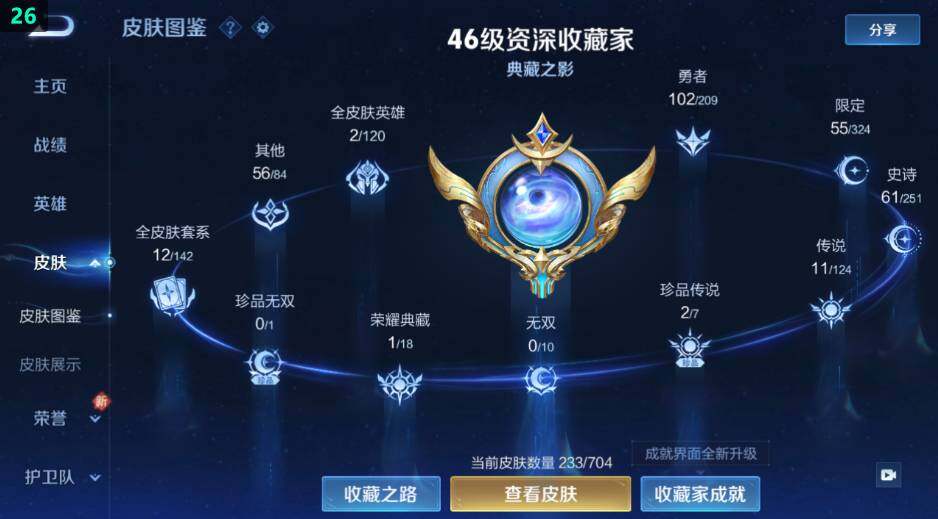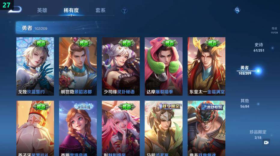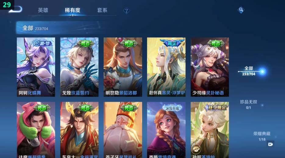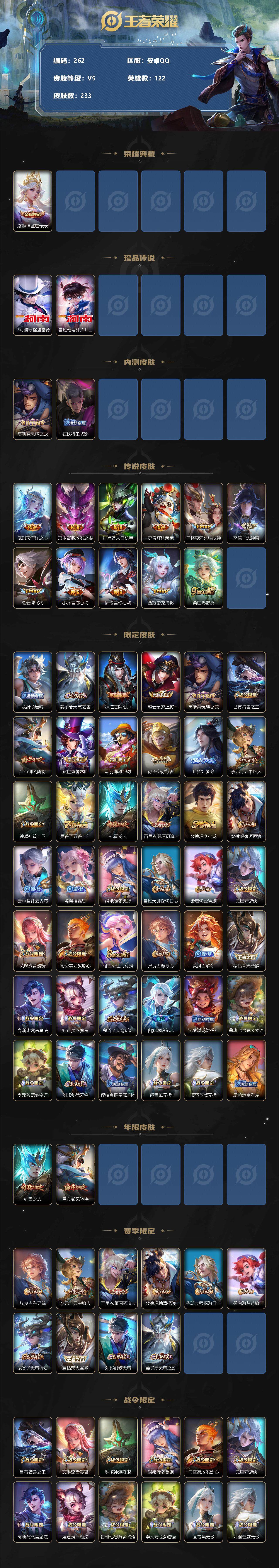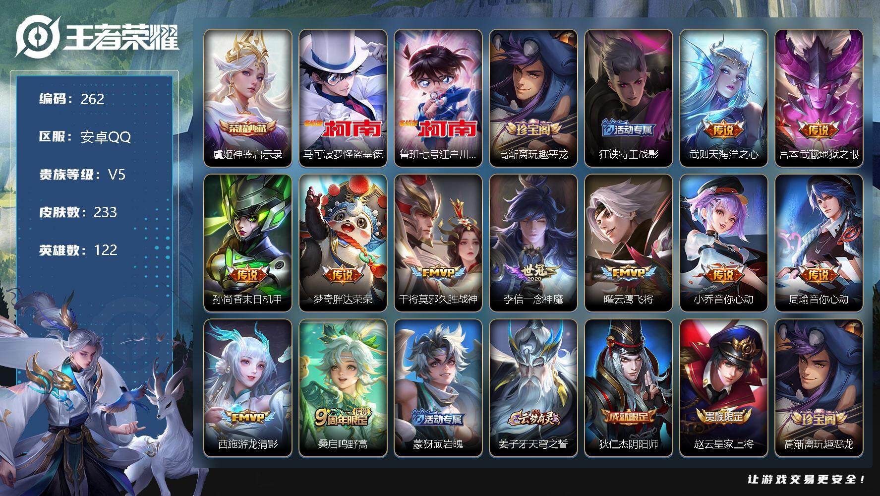 [10957839]【商品标题】:安卓Q-V5-至尊星耀IV段位-122英雄-233皮肤-1典藏-0珍品无双-0无双-2珍品传说-11传说-61史诗