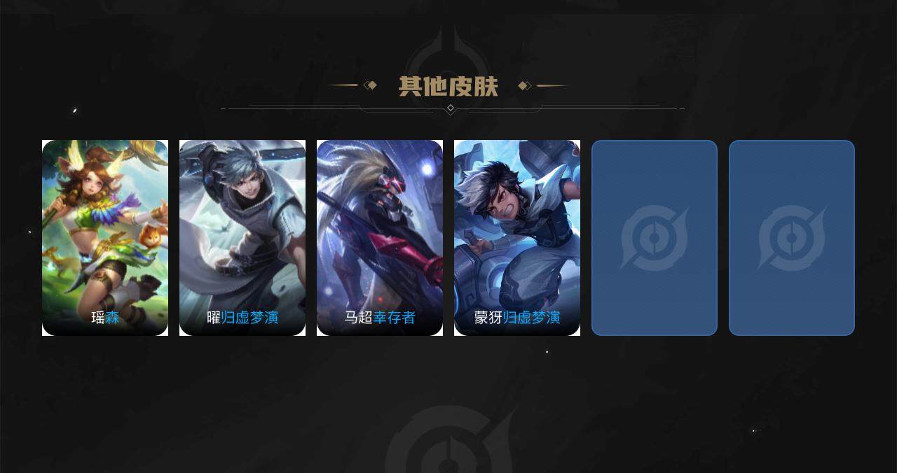 裴擒虎李小龙,曹操天狼征服者,苏烈玄武志,百里守约朱雀志,孙悟空大圣娶亲,露娜一生所爱,孙悟空至尊宝,干将莫邪冰霜恋舞曲,孙悟空孙行者