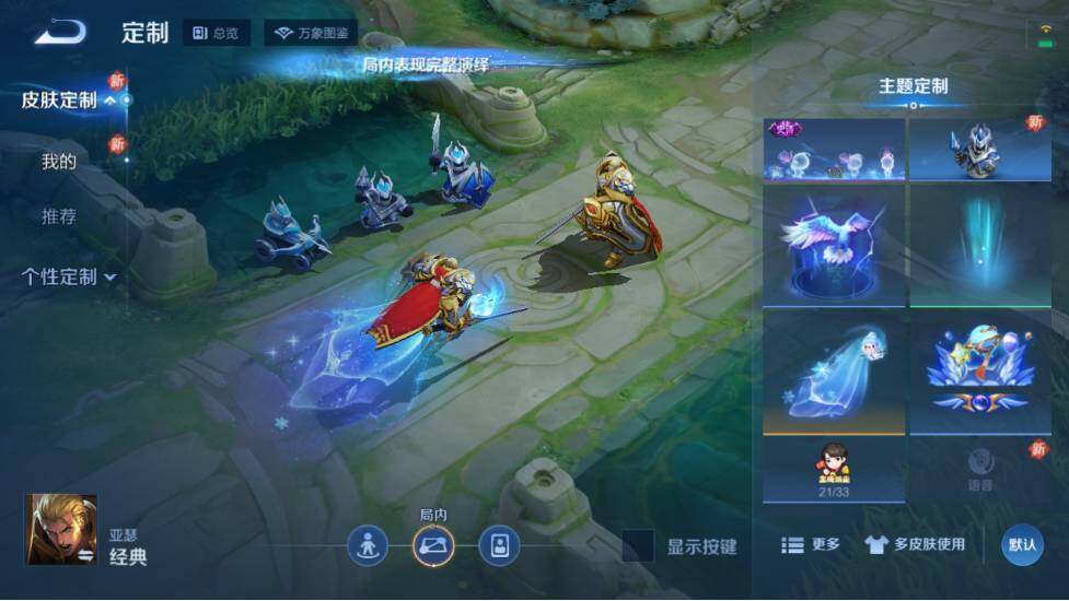 裴擒虎李小龙,上官婉儿梁祝,孙膑天狼运算者,百里玄策白虎志,百里守约朱雀志,孙悟空至尊宝,赵云引擎之心,孙悟空美猴王,鲁班七号寅虎·瑞焰,兰陵王影龙天霄,桑启鸣野蒿,澜愿照·九州拓
