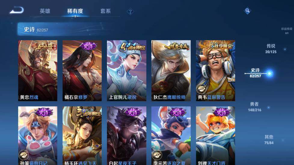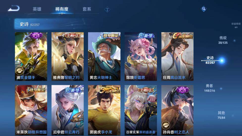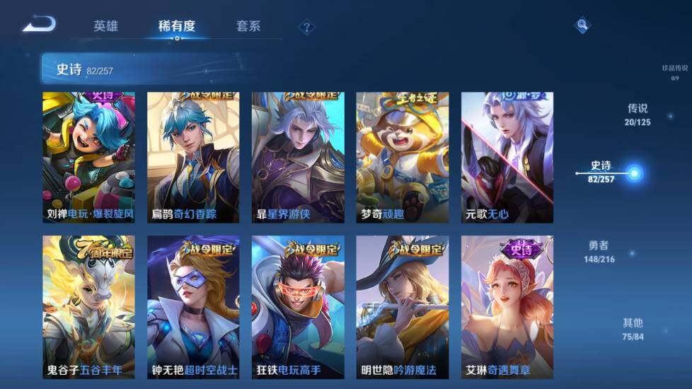 - [12298808]V7 4传说 122英雄 249皮肤 可修改实名 优质装备:猫影幻舞,末日机甲-孙尚香(绿蚂蚱),李逍遥 珍宝阁皮:蔷薇恋人,女武神 限定皮:鸣野蒿,至尊宝,白晶晶,飞衡(韩信年限),五谷丰年,游园惊梦,梁祝,御风骁将(吕布年限),天狼狩猎者,李小龙,大圣娶亲 史诗皮:石田雨龙,琥珀纪元伽罗,紫霞仙子,苍穹之光,电玩小子(小书包),黄金分割率,千年之狐,江河有灵,匿光侦查者,真我赫兹(百里守约),魅语,蒙恬荣光圣徽,冰冠公主,偶像歌手,暗夜猫娘,龙骑士(小龙虾),乱世虎臣,修罗,女仆咖啡,摇滚巨星,水果甜心,星夜王子,功夫厨神,幽灵船长,舞动绿茵,纤云弄巧,繁星吟游(呼啦呼啦),乘风破浪,逐浪之夏,曙光守护者,金属风暴,原初追逐者,圣诞狂欢,圣诞恋歌,鹰眼统帅,魅力维加斯,黎明之约