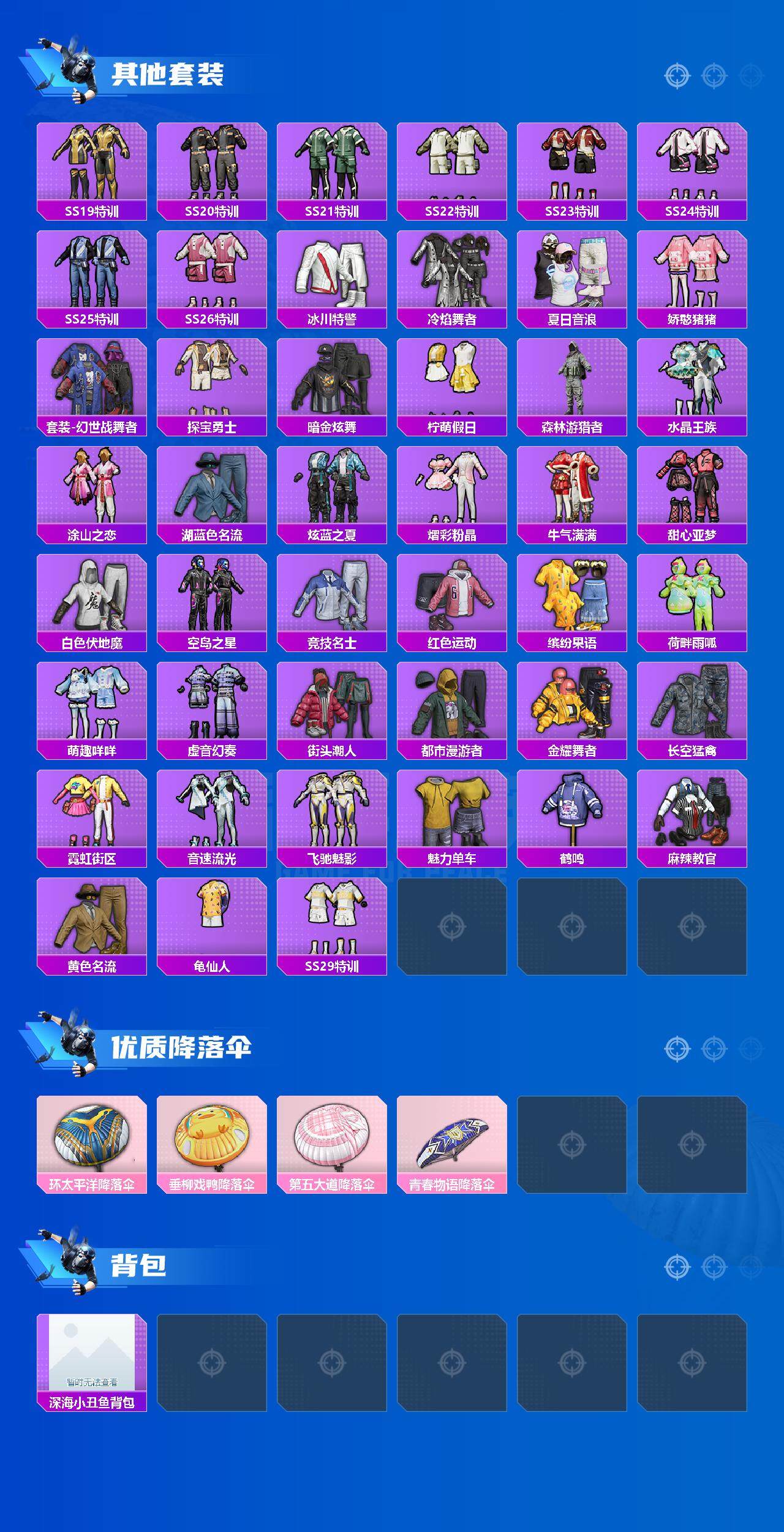 - PX_2020986- 苹果手Q-20王牌印记-有战神框-5粉装-6特效枪-1载具-72580热力值-195套装-225枪皮-4卓越印记-3传奇印记 【5粉装】,雪月幻音,沙场疾风,碧影闪光,炙焰红王,音爆索尼克 【6特效枪】AKM-绿萝繁花-5级 M416-电玩时刻-5级 M416-心之恋语-7级 AUG-暖羊咩咩-5级 Kar98K-巳巳如意-5级 UMP45-相思残雪-7级 【7稀有紫装】