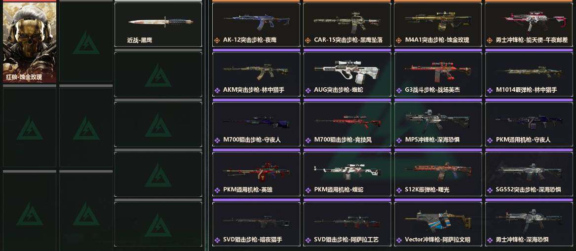 - [12400920]【商品标题】:辽宁一区-60V-3王者-1炫金 【热门武器】:M4A1-黑骑士,汤姆逊-烈龙*3,RPK-盘龙*5,加特林-炼狱,沙鹰-修罗*2 【王者炫金武器】:炫金千变,王者之幻,王者之怒,王者之锋 【音效卡】:M4A1-黑骑士音效卡,Barrett-毁灭音效卡 【稀有皮肤】:毁灭-星空,天龙-能量核心 【角色】:葵,蜀雪,铁骑荣耀 【人偶武器】:M4A1-雷神-精英刀锋,闪光弹-小乔 【挑战大师】:阐释者III 【英雄级武器】:M4A1-雷神*3,M4A1-黑龙,M4A1-黑骑士,RPK-盘龙*5,加特林-炼狱,汤姆逊-烈龙*3,AK47-无影,AK47-火麒麟,AWM-天龙,Barrett-毁灭*4,Barrett-极光*3,M4A1-龙血,AK-47-猩红传说*11,AK47-B-战神,沙鹰-天神*2,沙鹰-修罗*2,龙啸*2,屠龙*4 【特殊枪械】:,1黑骑士,3烈龙,5盘龙,1炼狱
