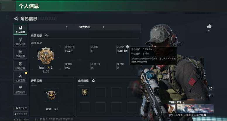 [11454193]总资产135m 纯币50m+非洲之心+仓库大红多+水墨云图骇爪全套+s3赛季通行证+烽火等级60 特勤部门等级可以 永久包赔