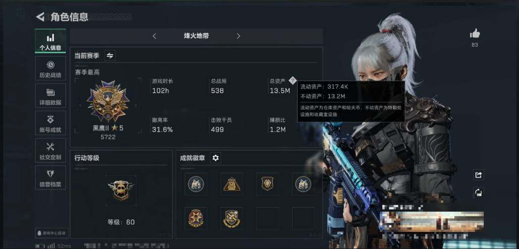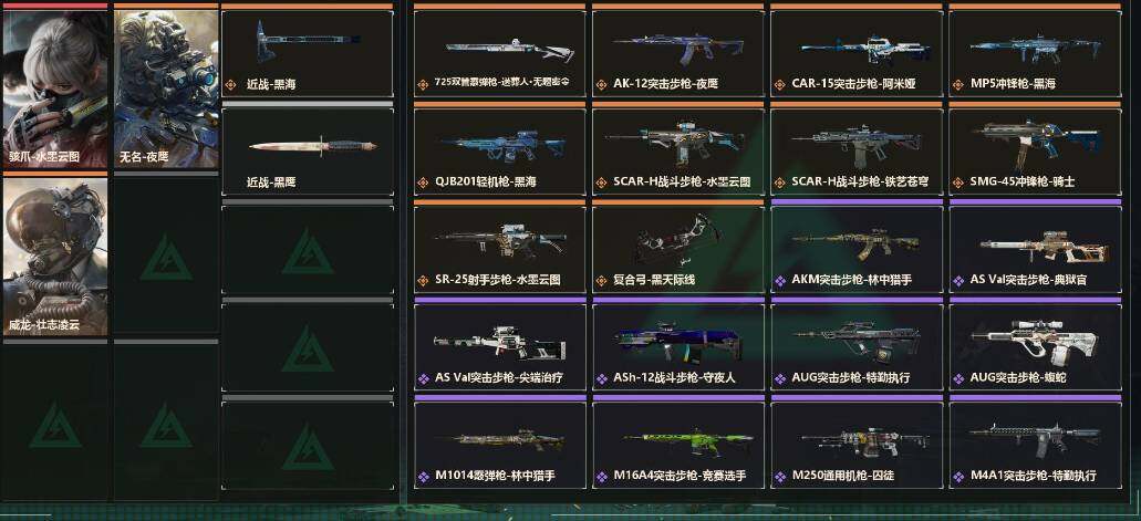 - [11576760]总资产:299.6M 11传说枪械 哈夫币:2.261K 可二次 可修改实名 烽火地带段位:钻石 全面战场段位:军士长 传说武器皮肤:UZI冲锋枪-特斯拉线圈,AWM狙击步枪-捞点薯条,腾龙突击步枪-捞点薯条,93R-捞点薯条,AK-12突击步枪-特斯拉线圈,SR-3M紧凑突击步枪-特斯拉线圈,勇士冲锋枪-能天使-午夜邮差,复合弓-黑-天际线,725双管霰弹枪-送葬人-无题密令,M4A1突击步枪-阿米娅,CAR-15突击步枪-阿米娅 史诗武器皮肤:PKM通用机枪-蝮蛇,QJB201轻机枪-Old Habits,M1014霰弹枪-林中猎手,MP5冲锋枪-深海恐惧,勇士冲锋枪-深海恐惧,SG552突击步枪-深海恐惧,AKM突击步枪-林中猎手,M16A4突击步枪-竞赛选手,M250通用机枪-囚徒,SV-98狙击步枪-林中猎手,PTR-32突击步枪-英雄,SV-98狙击步枪-囚徒,腾龙突击步枪-无垢,MP7冲锋枪-无垢,PSG-1射手步枪-无垢,SVD狙击步枪-荒野求生,SR-3M紧凑突击步枪-荒野求生,PKM通用机枪-荒野求生,沙漠之鹰-曙光,M700狙击步枪-竞技风