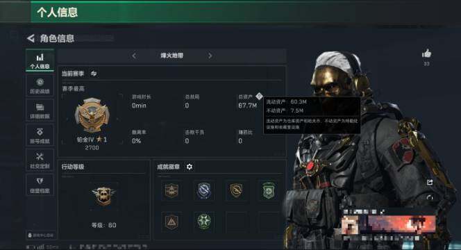 [11454165]总资产60m纯币13m+饰金玫瑰红狼全套+s3s4赛季通行证+烽火等级60特勤部门等级高永久包赔