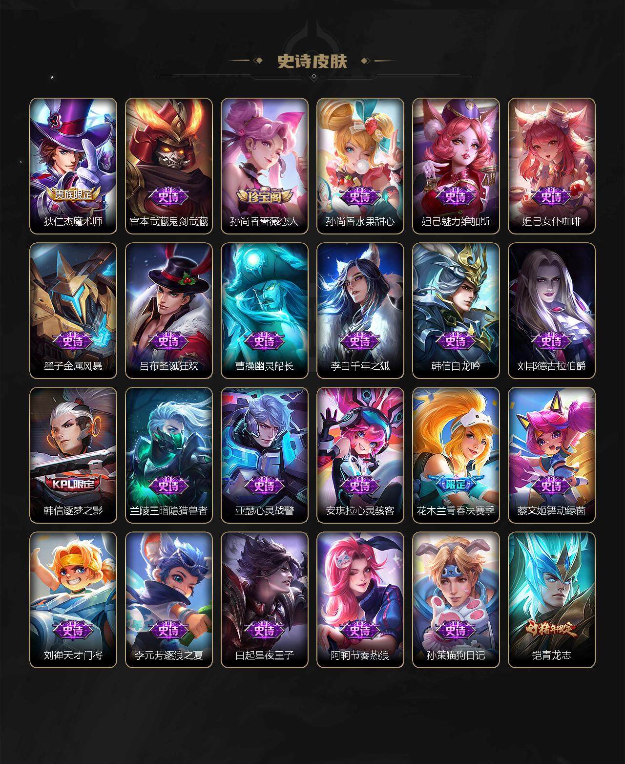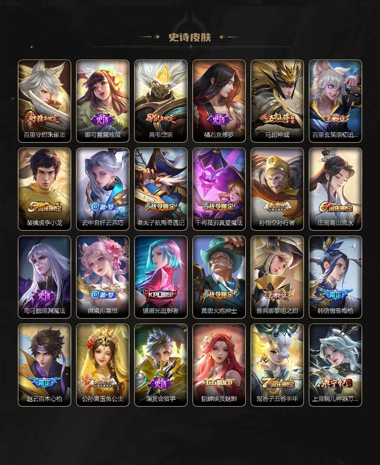 【史诗皮肤】:阿轲暗夜猫娘,赵云皇家上将,赵云未来纪元,貂蝉