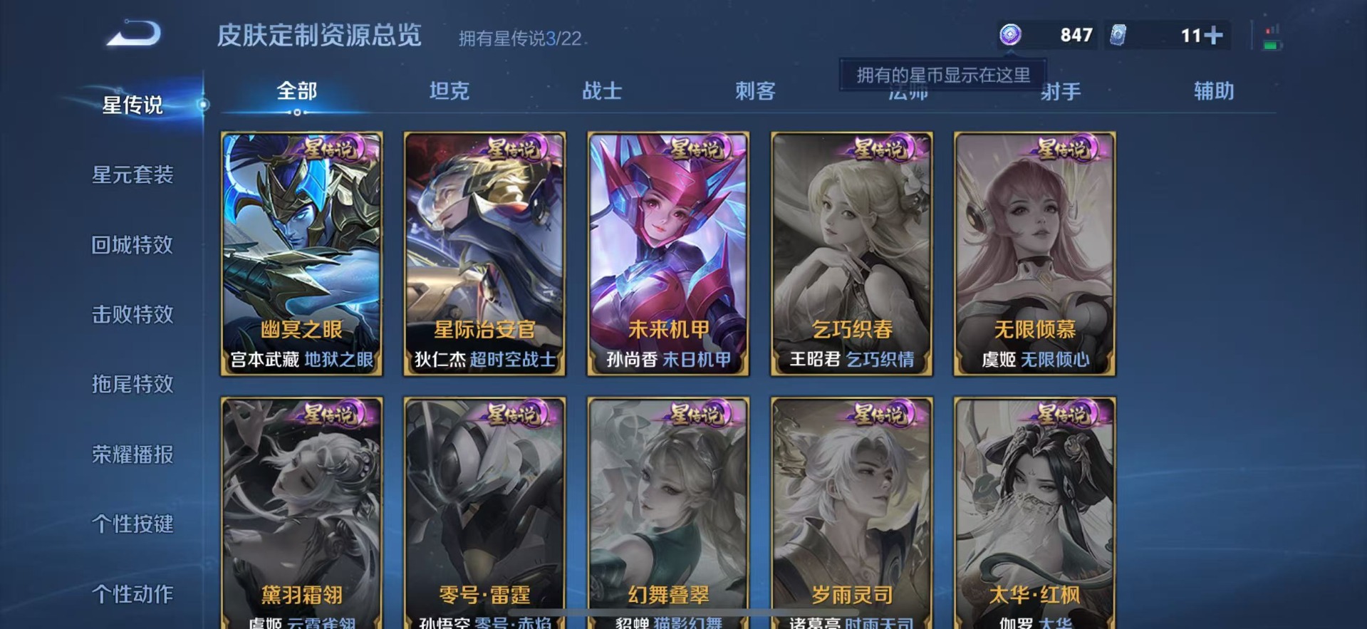 大乔白蛇,大乔猫狗日记,高渐离燃音魔法,刘邦德古拉伯爵,夏侯惇乘风破浪,阿轲暗夜猫娘,阿轲节奏热浪,铠曙光守护者,曹操幽灵船长,伽罗箭羽风息,廉颇地狱岩魂,伽罗琥珀纪元,小乔缤纷独角兽,孙策猫狗日记,不知火舞魅语,赵怀真器灵·浮梦炉,鲁班七号电玩小子,项羽苍穹之光,吕布圣诞狂欢,吕布末日机甲,露娜紫霞仙子,镜玫瑰异探,周瑜雪夜绮愿,诸葛亮黄金分割率,司马懿暗渊魔法,刘禅天才门将,刘禅绅士熊喵,宫本武藏鬼剑武藏,兰陵王暗隐猎兽者,貂蝉圣诞恋歌,苍狼魂孤将,花木兰水晶猎龙者,李白千年之狐,安琪拉心灵骇客,蒙犽龙鼓争鸣,蒙犽百解令,杨戬天秀·启明,白起星夜王子,亚瑟心灵战警,嬴政摇滚巨星,嬴政暗夜贵公子,程咬金功夫厨神,百里玄策原初追逐者,雅典娜冰冠公主,雅典娜黎明之约,韩信白龙吟,百里守约特工魅影,李元芳逐浪之夏,墨子金属风暴,蔡文姬舞动绿茵,娜可露露晚萤,钟馗乐园奇幻夜,橘右京修罗
