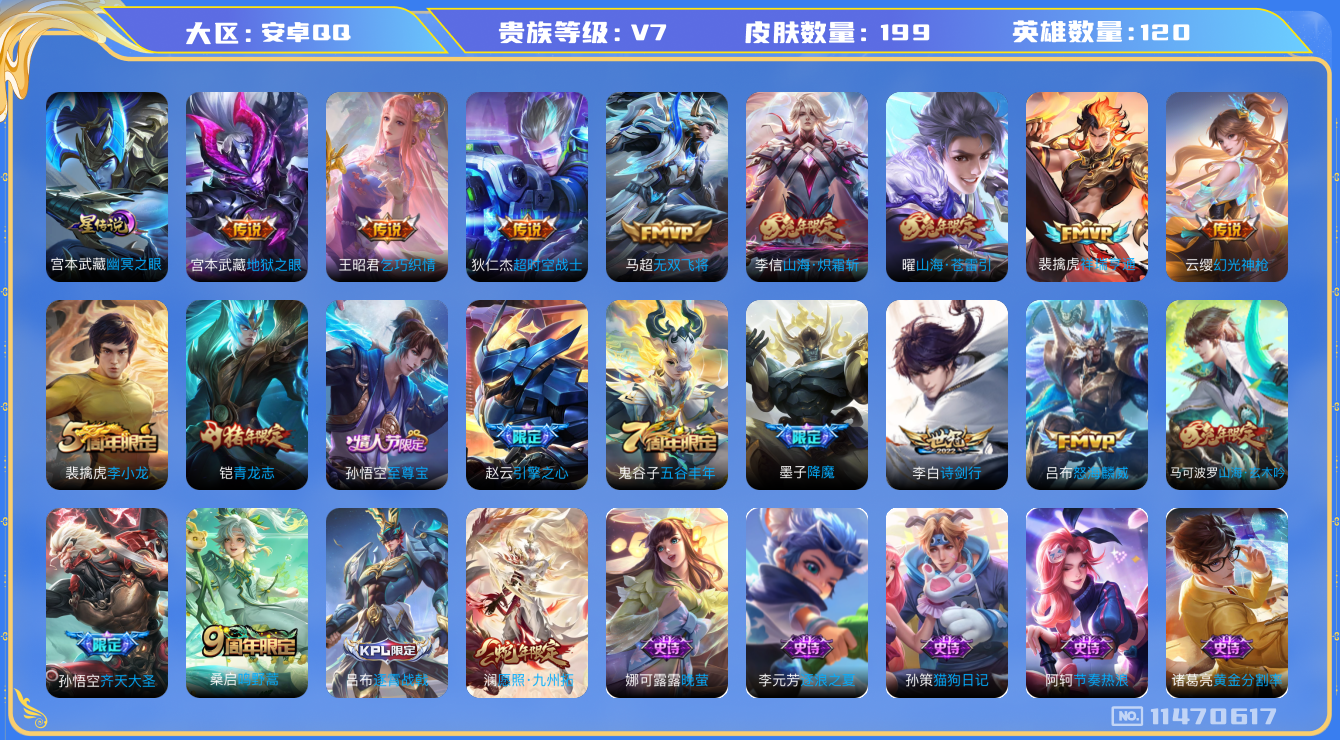 [11470617]武则天,澜蛇年限,至尊宝,马可年限,-可二次-120英雄-199皮肤-13传说-55史诗 山海·苍雷引-曜 山海·炽霜斩-李信 齐天大圣-孙悟空 降魔-墨子 山海·玄木吟-马可波罗 百相守梦-刘备 至尊宝-孙悟空 引擎之心-赵云 街头霸王-韩信
