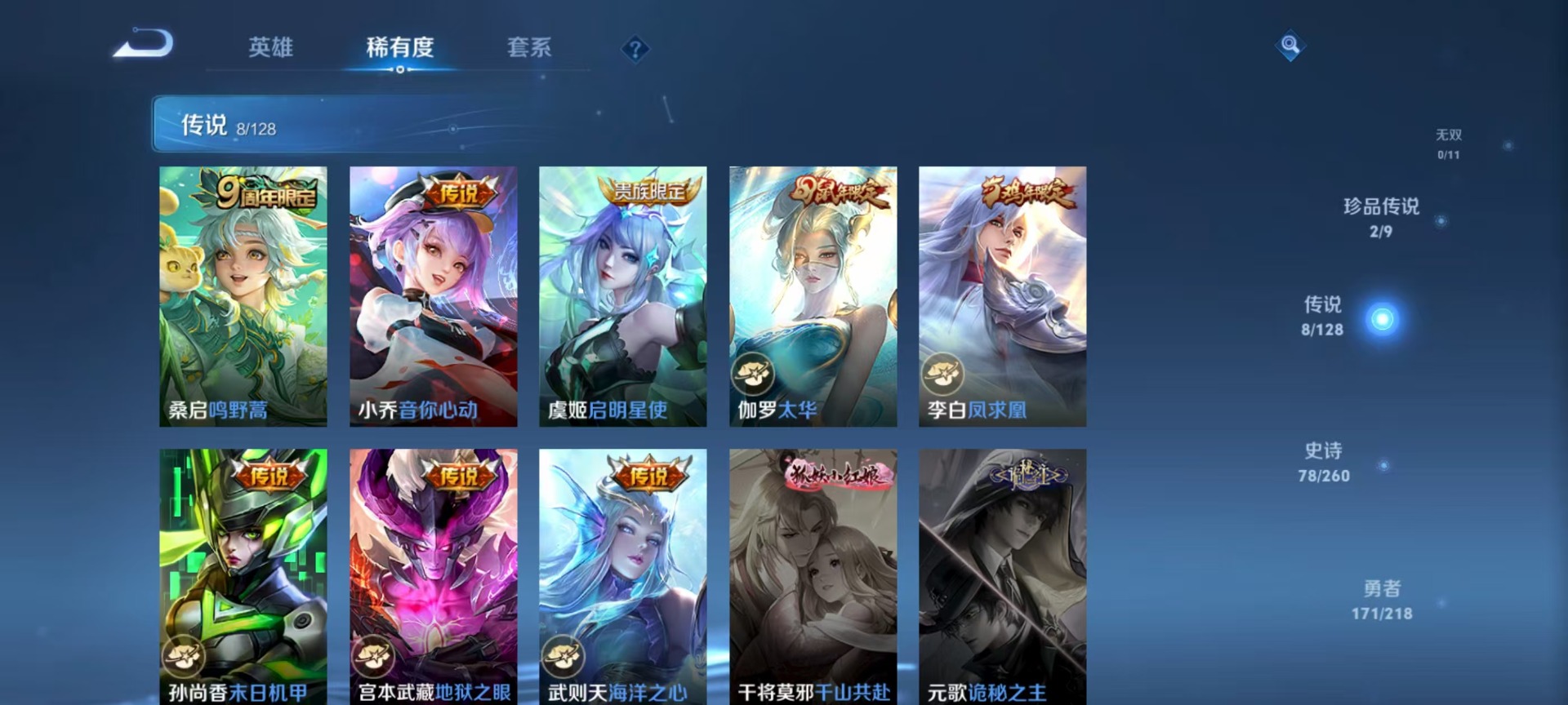 [11469200]V8 2典藏 2珍品传说 8传说 126英雄 339皮肤 典藏英雄武则天 可修改实名 优质装备:无限飓风号(高达),拾光映像(瑶典藏),江户川柯南,末日机甲-孙尚香(绿蚂蚱),音你心动-小乔,海洋之心,地狱之眼 珍品传说:时之奇旅-孙策 珍宝阁皮:蔷薇恋人,女武神 限定皮:逐霄战戟,鸣野蒿,至尊宝,凤求凰(白切鸡),凤凰于飞,太华(伽罗年限),时之彼端,游园惊梦,梁祝,玄武志(苏烈年限),如梦令-后羿,霸王别姬-项羽,乒乒小将 史诗皮:鸭鸭历险记-刘禅,器灵·浮梦炉,化蝶舞,龙之律动,石田雨龙,怒海争锋,琥珀纪元伽罗,蔬乡物语(鲁班七号),百相守梦-黄忠,紫霞仙子,电玩小子(小书包),黄金分割率,千年之狐,江河有灵,匿光侦查者,雪夜绮愿(周瑜),百解令(蒙犽),高渐离燃音魔法,无限星赏官,冰冠公主,青蛇,偶像歌手,白蛇,猫狗日记-孙策,猫狗日记-大乔,乱世虎臣,摇滚巨星,水果甜心,绅士熊喵,天才门将,星夜王子,心灵骇客,功夫厨神,德古拉伯爵,暗隐猎兽者,幽灵船长,鬼剑武藏,心灵战警,乐园奇幻夜,舞动绿茵,地狱岩魂,纤云弄巧,繁星吟游(呼啦呼啦),拒霜思,缤纷独角兽,乘风破浪,逐浪之夏,月团寄思,水晶猎龙者,曙光守护者,金属风暴,原初追逐者,圣诞狂欢,圣诞恋歌,鹰眼统帅,王者之锤,魅力维加斯,未来纪元-赵云