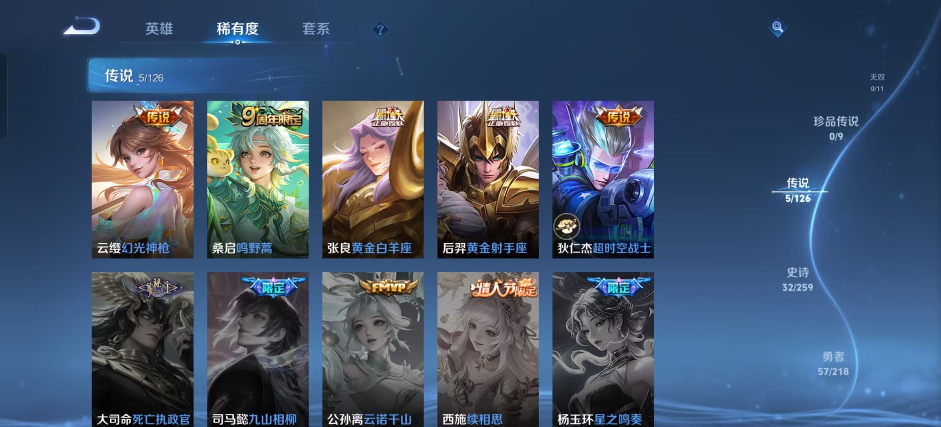 - [12254345]V10 10典藏 3无双 75传说 127英雄 426皮肤 典藏英雄武则天 可修改实名 优质装备:天鹅之梦(小乔典藏),星空梦想(太空人),倪克斯神谕(宇宙婆娘),杀手不太冷,大秦宣太后,赤影疾锋,幻阙歌(貂蝉典藏),弑枪猎影(韩信典藏),青丘·九尾(妲己无双),神鉴启示录,小乔时之魔女(小乔无双),韩信群星魔术团(韩信无双),拾光映像(瑶典藏),黄金狮子座,黄金射手座,冠军飞将,云鹰飞将(小将军),绛天战甲(鸡嘴战神),黄金白羊座,猫影幻舞,久胜战神,炽阳神光,一念神魔,云霓雀翎,末日机甲-孙尚香(绿蚂蚱),地狱火,仲夏夜之梦(大飞蛾),音你心动-小乔,海洋之心,地狱之眼,飞鸢探春,音你心动-周瑜,胖达荣荣,李逍遥,乞巧织情,时之恋人-刘备(电焊工),游龙清影(小青龙),淬星耀世,超时空战士-狄仁杰,末日机甲-孙策,花朝如约(花篮子),挚爱花嫁,无双飞将,音你闪耀(rap皮),碎云,天秀幻梦,神器·狴犴令,记忆之芯(机甲兔),青丘·九尾,电玩·雷克斯,灼幽烈阳,鹤归松栖(云缨),惊梅引,遇见神鼓,鲁班七号-时之奇旅,大乔-时之奇旅,永恒水手月亮,夜礼服假面,小动物乐团,霜月吟,澜逐花归海,艾琳觅芳踪,琥珀纪元铠,琥珀纪元马超,金乌负日,黄金天蝎座,云中君群星魔术团,朵莉亚心动手记,涂山容容 传说皮:乘龙·问璇玑(孙尚香年限),乘龙·铭钟鼎(赵云年限),乘龙·淬吴钩(孙策年限),貂蝉曦玄引,吕布曦玄引,典韦战鼓燎原,落雪白狼,云诺千山 珍宝阁皮:妄想食味 限定皮:鸣野蒿,凤凰于飞,寅虎·展翼(孙膑年限),前尘镜,星穹之声,魔法小厨娘,白晶晶,山海·碧波行(瑶年限),至美·乘鲤谣,至美·化雀舞,影龙天霄,遇见飞天,诗剑行,匿光决锋者,怒海麟威,青龙志(铠年限),烈魂,岱宗(典韦年限),祈雪灵祝(雪兔子),天狼绘梦者,逐梦之光,如梦令-嫦娥,如梦令-后羿,奇迹圣诞,孙行者,猪悟能,一生所爱,大圣娶亲,天魔缭乱,冰霜恋舞曲,云端筑梦师,蜜橘之夏,女儿国国王,寅虎·御盾(廉颇年限),寅虎·瑞焰(虎皮蛋子),寅虎·心曲(虎婆),寅虎·赤拳(老虎年限),玉兔公主,深海之息(深海大菠萝),唐三藏,枫霜尽,时之奇旅-妲己 史诗皮:灵蛊蚀心,琥珀纪元伽罗,乘龙·忆丹青(大乔年限),埋骨钱,破空之剑,战舞者,涂山红红,东方月初,芈月浮光幕影,乘龙·聚宝船(安琪拉年限),怒海争锋,海