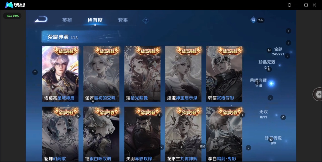 - [11546721]V8 1典藏 20传说 124英雄 186皮肤 可修改实名 优质装备:九霄神辉(木兰典藏),黄金射手座,仲夏夜之梦(大飞蛾),淬星耀世,挚爱之约,无双飞将,山海·炽霜斩(李信年限),山海·苍雷引(电光曜子),记忆之芯(机甲兔) 传说皮:典韦战鼓燎原 珍宝阁皮:蔷薇恋人,玩趣恶龙 限定皮:至尊宝,傲雪梅枪,时雨天司(水龙头),无限倾心-项羽,高山流水,诗剑行,齐天大圣,怒海麟威,五谷丰年,武圣,如梦令-后羿,孙行者,青春决赛季,匿光追影者,寅虎·瑞焰(虎皮蛋子),寅虎·赤拳(老虎年限),深海之息(深海大菠萝),枫霜尽 史诗皮:化蝶舞,龙之律动,黄金分割率,特工魅影,千年之狐,永昼,电玩·爆裂旋风,江河有灵,高渐离燃音魔法,蒙恬荣光圣徽,偶像歌手,魅语,猫狗日记-孙策,时之恋人-孙尚香,乱世虎臣,节奏热浪,修罗,摇滚巨星,水果甜心,天才门将,星夜王子,功夫厨神,德古拉伯爵,暗隐猎兽者,幽灵船长,鬼剑武藏,暗渊魔法,心灵战警,纤云弄巧,拒霜思,缤纷独角兽,乘风破浪,逐浪之夏,水晶猎龙者,曙光守护者,箭羽风息,金属风暴,圣诞恋歌,鹰眼统帅,暗夜贵公子,赏金猎手,无心,未来纪元-赵云