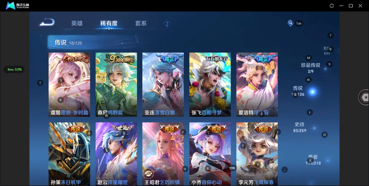 - [11881969]V10 6典藏 1无双 50传说 123英雄 448皮肤 典藏英雄武则天 可修改实名 优质装备:天鹅之梦(小乔典藏),星空梦想(太空人),倪克斯神谕(宇宙婆娘),无限飓风号(高达),杀手不太冷,全息碎影(猴子典藏),碎月剑心(李白无双),黄金狮子座,黄金射手座,冠军飞将,云鹰飞将(小将军),绛天战甲(鸡嘴战神),黄金白羊座,猫影幻舞,久胜战神,炽阳神光,一念神魔,云霓雀翎,末日机甲-孙尚香(绿蚂蚱),地狱火,仲夏夜之梦(大飞蛾),音你心动-小乔,零号·赤焰,海洋之心,地狱之眼,飞鸢探春,音你心动-周瑜,胖达荣荣,李逍遥,乞巧织情,时之恋人-刘备(电焊工),游龙清影(小青龙),淬星耀世,超时空战士-狄仁杰,遇见胡旋,音你闪耀(rap皮),霜月吟,澜逐花归海,艾琳觅芳踪,琥珀纪元铠,琥珀纪元马超 珍宝阁皮:蔷薇恋人,女武神 限定皮:至尊宝,白虎志(电光耗子),凤求凰(白切鸡),凤凰于飞,太华(伽罗年限),梅西,武陵仙君(小桃花),异界灵契(白毛香),傲雪梅枪,补天,星穹之声,绯月行,时之彼端,白鹤梁神女,魔法小厨娘,白晶晶,时雨天司(水龙头),神威(电光马子),飞衡(韩信年限),玄嵩(庄周年限),瑞麟志(木兰年限),遇见飞天,高山流水,五谷丰年,青龙志(铠年限),冰锋战神,幽恒(沐浴露),武圣,天狼运算者,游园惊梦,梁祝,御风骁将(吕布年限),天狼狩猎者,龙胆,逐梦之翼,逐梦之星,烈魂,岱宗(典韦年限),天狼溯光者,虎魄,逐梦之音,天狼征服者,奔雷神使(牛魔年限),祈雪灵祝(雪兔子),天狼绘梦者,李小龙,逐梦之影,逐梦之光,玄武志(苏烈年限),朱雀志(守约年限),永曜之星,辉光之辰,如梦令-嫦娥,如梦令-后羿,霸王别姬-项羽,霸王别姬-虞姬,奇迹圣诞,默契交锋-兰陵王,默契交锋-花木兰,孙行者,猪悟能,一生所爱,大圣娶亲,引擎之心,天魔缭乱,青春决赛季,冰霜恋舞曲,云端筑梦师,乒乒小将,蜜橘之夏,热情桑巴,神奇女侠,美猴王,匿光追影者,女儿国国王,时之祈愿-云中君,时之祈愿-瑶(瑶传限),玉兔公主 史诗皮:琥珀纪元伽罗,遇见神鹿,紫霞仙子,苍穹之光,电玩小子(小书包),白龙吟,黄金分割率,特工魅影,千年之狐,永昼,江河有灵,雪夜绮愿(周瑜),百解令(蒙犽),高渐离燃音魔法,蒙恬荣光圣徽,偶像歌手,龙骑士(小龙虾),白蛇,暗夜猫娘,魅语,无限星赏官,晚萤,冰冠公主,