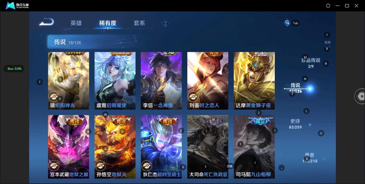 - [11607315]V8 13传说 121英雄 153皮肤 可修改实名 优质装备:黄金狮子座,黄金射手座,冠军飞将,云鹰飞将(小将军),炽阳神光,一念神魔,末日机甲-孙尚香(绿蚂蚱),李逍遥,乞巧织情,淬星耀世,超时空战士-狄仁杰 珍宝阁皮:玩趣恶龙 限定皮:白虎志(电光耗子),傲雪梅枪,时雨天司(水龙头),高山流水,五谷丰年,青龙志(铠年限),李小龙,大圣娶亲,青春决赛季 史诗皮:紫霞仙子,苍穹之光,白龙吟,特工魅影,魅语,无限星赏官,晚萤,龙骑士(小龙虾),时之恋人-孙尚香,乱世虎臣,修罗,水果甜心,天才门将,星夜王子,功夫厨神,暗隐猎兽者,幽灵船长,天秀·启明,纤云弄巧,繁星吟游(呼啦呼啦),乘风破浪,水晶猎龙者,曙光守护者,金属风暴,原初追逐者,圣诞狂欢,圣诞恋歌,鹰眼统帅,魅力维加斯,黎明之约,无心,未来纪元-赵云1