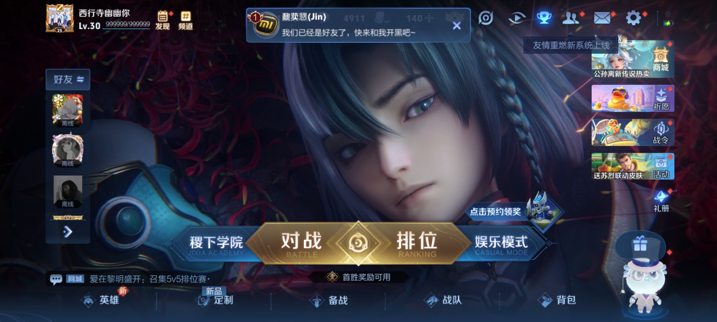 - PX_2093859-实名: 可修改 贵族等级: V5 英雄数: 46 皮肤数: 33 传说皮: 无双飞将,祥瑞亨通 限定皮: 愿照·山河定