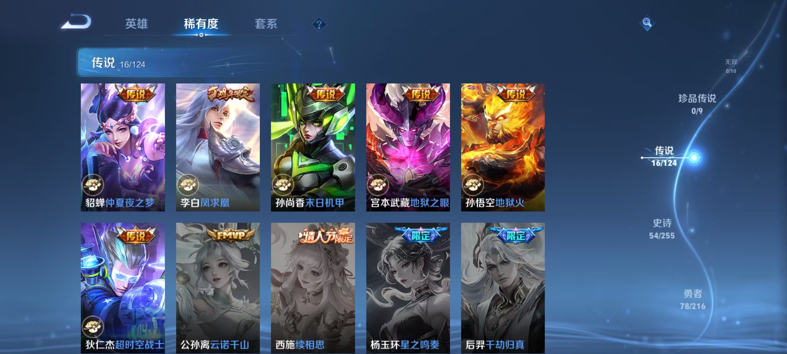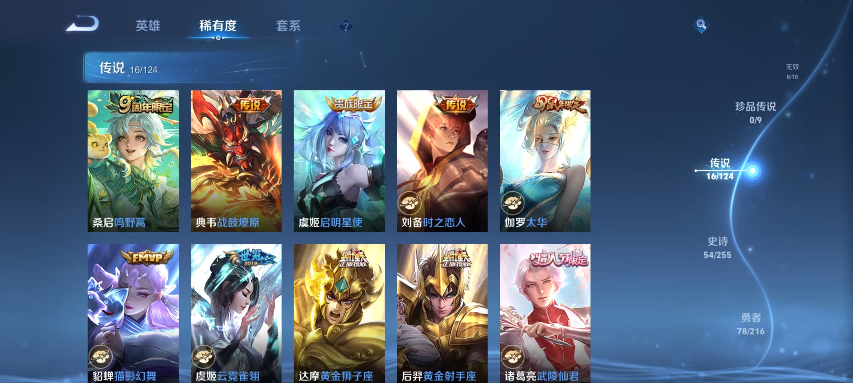 [11465783]-可二次-V9-124英雄-218皮肤-2典藏-1星传说-16传说-54史诗 太华-伽罗 武陵仙君-诸葛亮 凤求凰-李白 岱宗-典韦 冰冠公主-雅典娜 天狼绘梦者-上官婉儿 神威-马超 烈魂-黄忠 至尊宝-孙悟空 街头霸王-韩信