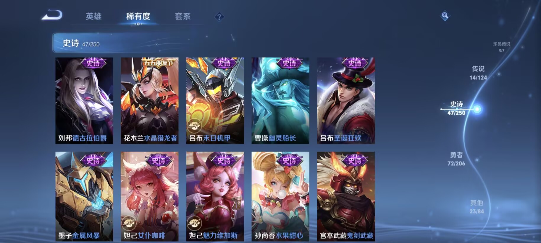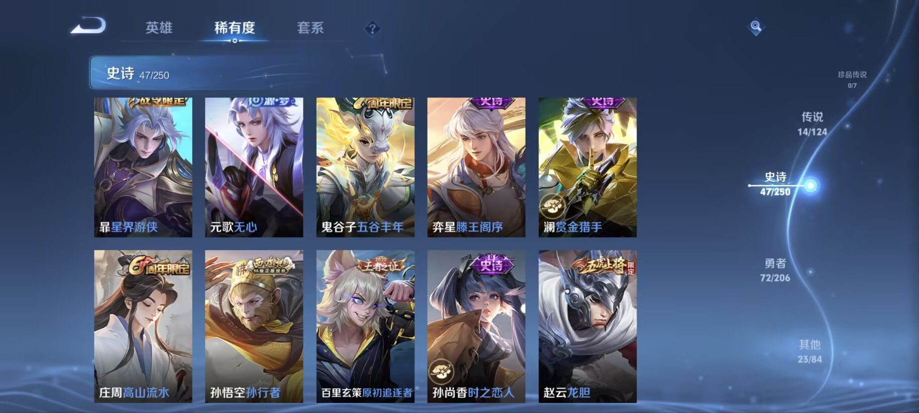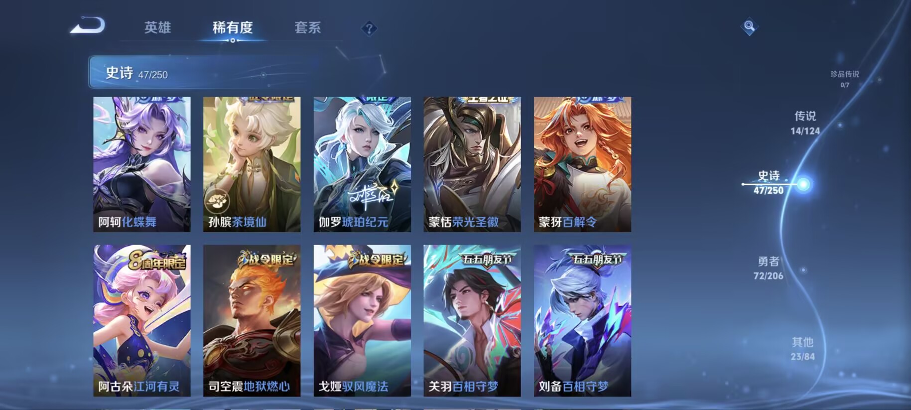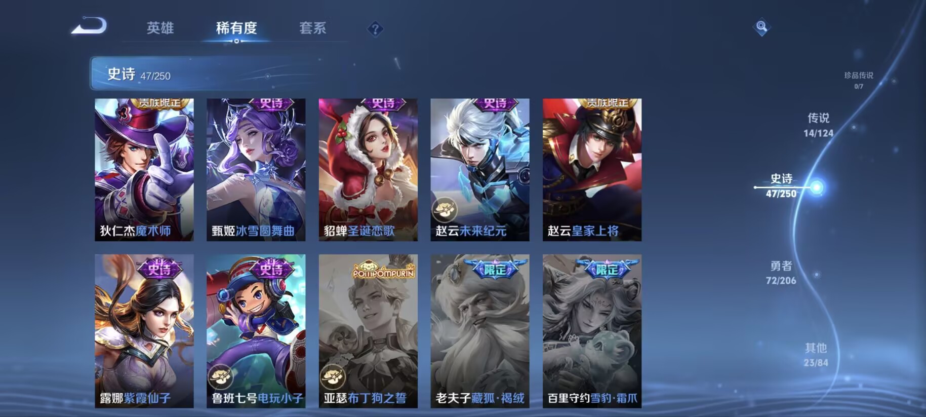 - PX_2056266-贵族7/皮肤203/典藏1/传说5/史诗63/英雄121/全息碎影/玩趣恶龙/特工战影/超时空战士男/地狱火/一念神魔/逐花归海/桑启鸣野蒿/姜子牙天穹之誓/狄仁杰阴阳师/赵云皇家上将/墨子神迹守卫/庄周高山流水/玩趣恶龙/钟无艳王者之锤/钟无艳超时空战士/云间偶戏/元歌无心/甄姬落雪兰心/岱宗/暗影游猎/狄仁杰魔术师/万华元夜/达摩星际陆战队/沙漠行僧/项羽海滩派对/醍醐杖