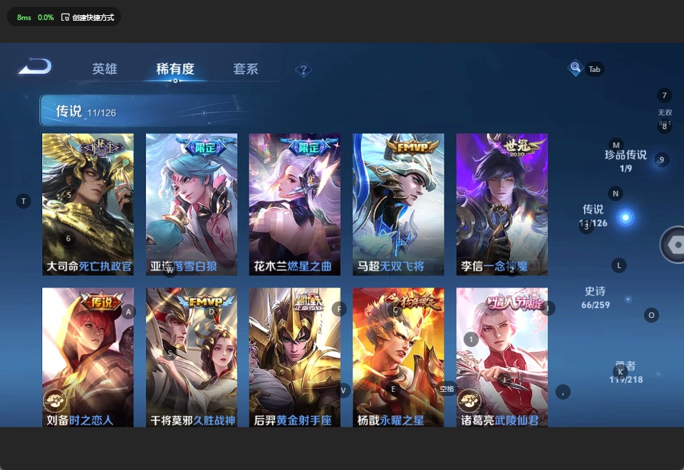 - [11942826]V7 1典藏 2珍品传说 4传说 123英雄 220皮肤 可修改实名 优质装备:弑枪猎影(韩信典藏),怪盗基德,一念神魔,末日机甲-孙尚香(绿蚂蚱),涂山容容 珍品传说:时之奇旅-孙策 传说皮:幻光神枪 珍宝阁皮:妄想食味,玩趣恶龙 限定皮:逐霄战戟,鸣野蒿,五谷丰年,梁祝,天狼狩猎者,李小龙 史诗皮:鸭鸭历险记-刘禅,器灵·浮梦炉,化蝶舞,星界战将,龙之律动,雪豹·霜爪,石田雨龙,百相守梦-周瑜,茶境仙,破空之剑,百相守梦-百里守约,星界特工,百相守梦-黄忠,白龙吟,特工魅影,千年之狐,冰冠公主,暗夜猫娘,猫狗日记-孙策,猫狗日记-大乔,时之恋人-孙尚香,乱世虎臣,修罗,摇滚巨星,水果甜心,星夜王子,心灵骇客,功夫厨神,德古拉伯爵,暗隐猎兽者,幽灵船长,鬼剑武藏,暗渊魔法,舞动绿茵,地狱岩魂,纤云弄巧,繁星吟游(呼啦呼啦),乘风破浪,逐浪之夏,水晶猎龙者,曙光守护者,箭羽风息,金属风暴,圣诞恋歌,鹰眼统帅,黎明之约,无心,未来纪元-赵云