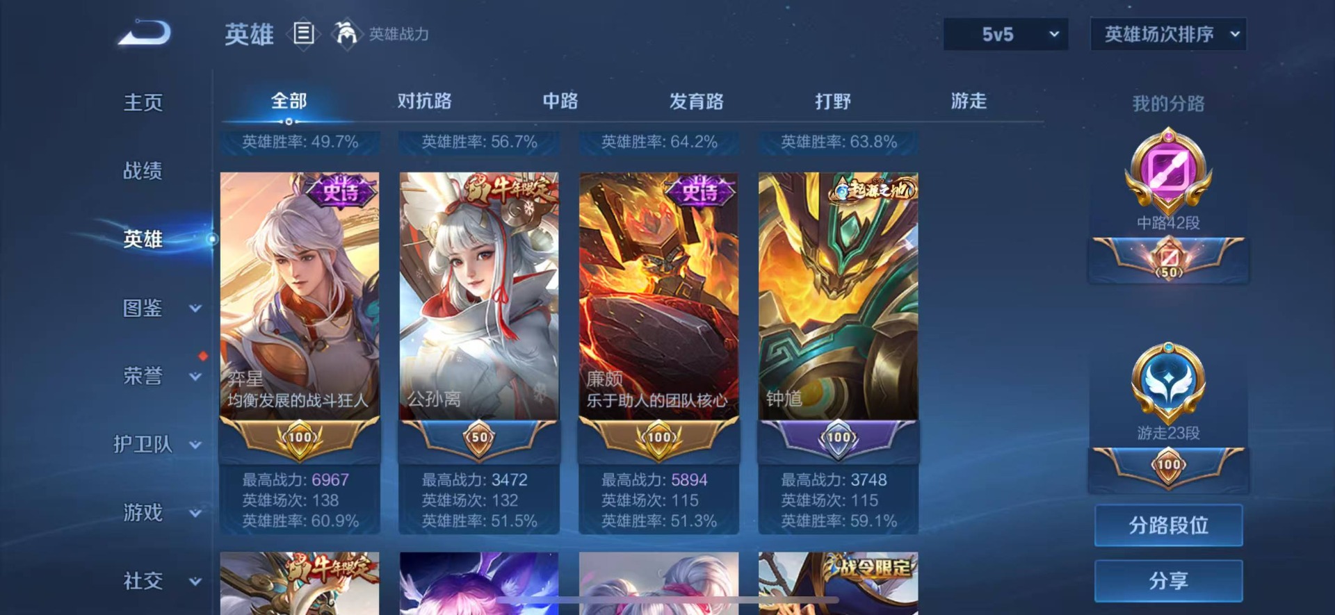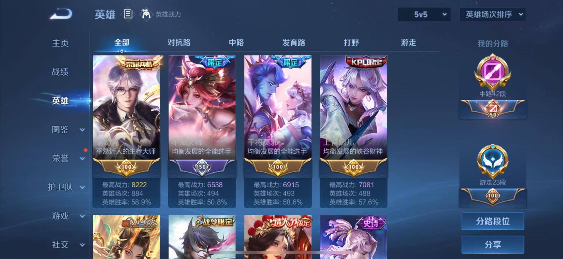 - [11526056]V5 3传说 122英雄 133皮肤 可修改实名 传说皮:幻光神枪 珍宝阁皮:妄想食味 限定皮:愿照·千秋盛(女娲年限),鸣野蒿,梁祝 史诗皮:器灵·浮梦炉,糖绘人间,星界战将,龙之律动,雪豹·霜爪,蒙犽顽岩魄,苍穹之光,黄金分割率,千年之狐,江河有灵,冰冠公主,猫狗日记-孙策,水果甜心,星夜王子,心灵骇客,鬼剑武藏,心灵战警,缤纷独角兽,乘风破浪,逐浪之夏,原初追逐者,圣诞恋歌,鹰眼统帅,暗夜贵公子,未来纪元-赵云