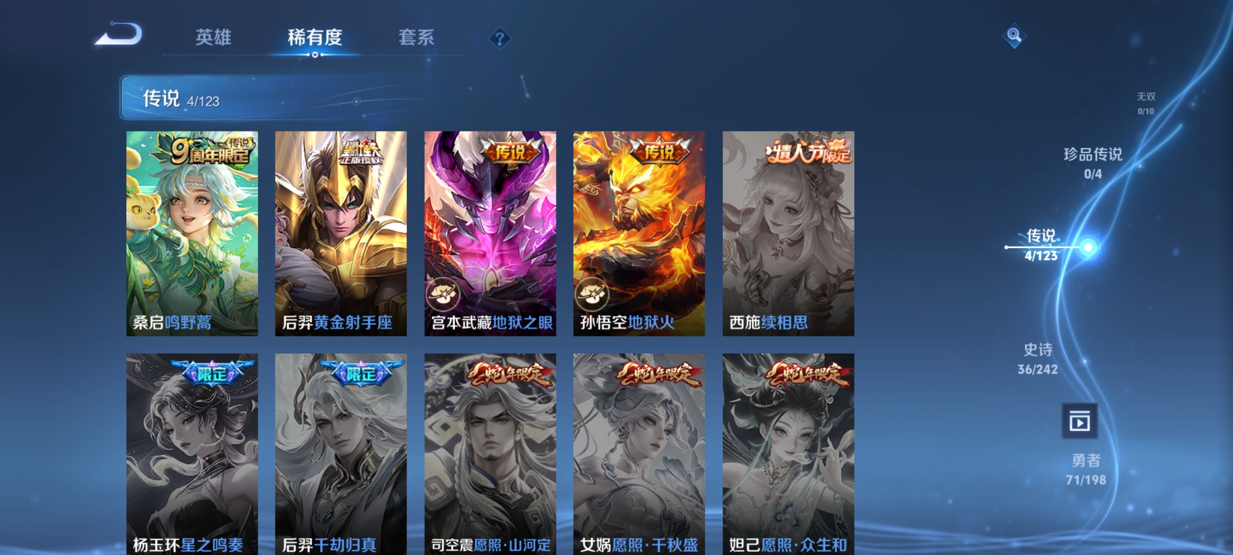 - [12225025]V10 8典藏 4无双 1珍品传说 60传说 126英雄 504皮肤 典藏英雄武则天 可修改实名 优质装备:倪克斯神谕(宇宙婆娘),杀手不太冷,鸣剑·曳影,全息碎影(猴子典藏),星域神启(倪克斯贼亮),幻阙歌(貂蝉典藏),弑枪猎影(韩信典藏),真我赫兹(瑶)(瑶无双),青丘·九尾(妲己无双),碎月剑心(李白无双),神鉴启示录,器灵·螭龙剑,器灵·落星盏,黄金狮子座,黄金射手座,冠军飞将,云鹰飞将(小将军),绛天战甲(鸡嘴战神),猫影幻舞,久胜战神,炽阳神光,一念神魔,云霓雀翎,地狱火,仲夏夜之梦(大飞蛾),音你心动-小乔,海洋之心,地狱之眼,飞鸢探春,音你心动-周瑜,胖达荣荣,李逍遥,乞巧织情,时之恋人-刘备(电焊工),淬星耀世,超时空战士-狄仁杰,挚爱之约,山海·炽霜斩(李信年限),山海·琳琅生(小乔年限),山海·苍雷引(电光曜子),浮生妄,青丘·九尾,鹤羽星尊,鹤归松栖(云缨),艾琳觅芳踪,千劫归真,涂山容容 传说皮:乘龙·问璇玑(孙尚香年限),乘龙·铭钟鼎(赵云年限),乘龙·淬吴钩(孙策年限),落雪白狼,星之鸣奏,幻光神枪 珍宝阁皮:妄想食味,万物之道,优雅恋人,蔷薇恋人,女武神 限定皮:愿照·九州拓(澜年限),愿照·福禄聚(蔡文姬年限),愿照·岁时盈(虞姬年限),愿照·山河定(司空震年限),愿照·众生和(妲己年限),愿照·千秋盛(女娲年限),鸣野蒿,至尊宝,白虎志(电光耗子),凤求凰(白切鸡),凤凰于飞,梅西,傲雪梅枪,补天,寅虎·展翼(孙膑年限),绯月行,白晶晶,时雨天司(水龙头),神威(电光马子),飞衡(韩信年限),山海·碧波行(瑶年限),无限倾心-项羽,影龙天霄,遇见飞天,高山流水,诗剑行,无限倾心-虞姬,齐天大圣,降魔,五谷丰年,青龙志(铠年限),冰锋战神,幽恒(沐浴露),游园惊梦,梁祝,御风骁将(吕布年限),天狼狩猎者,龙胆,逐梦之翼,烈魂,天狼溯光者,祈雪灵祝(雪兔子),李小龙,逐梦之影,玄武志(苏烈年限),朱雀志(守约年限),辉光之辰,圣诞老人,真爱至上,纯白花嫁,孙行者,猪悟能,一生所爱,引擎之心,青春决赛季,冰霜恋舞曲,蜜橘之夏,美猴王,匿光追影者,女儿国国王,寅虎·御盾(廉颇年限),寅虎·心曲(虎婆),寅虎·赤拳(老虎年限),时之祈愿-云中君,时之祈愿-瑶(瑶传限),百木心枪,玉兔公主,启示之音,唐三藏,神器·万象笔,梦圆繁星,山海