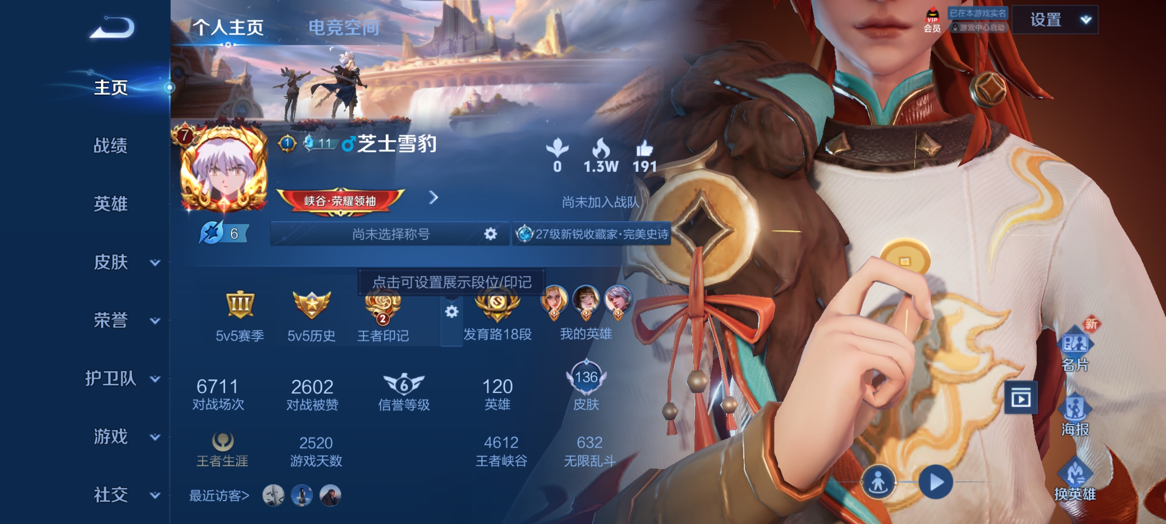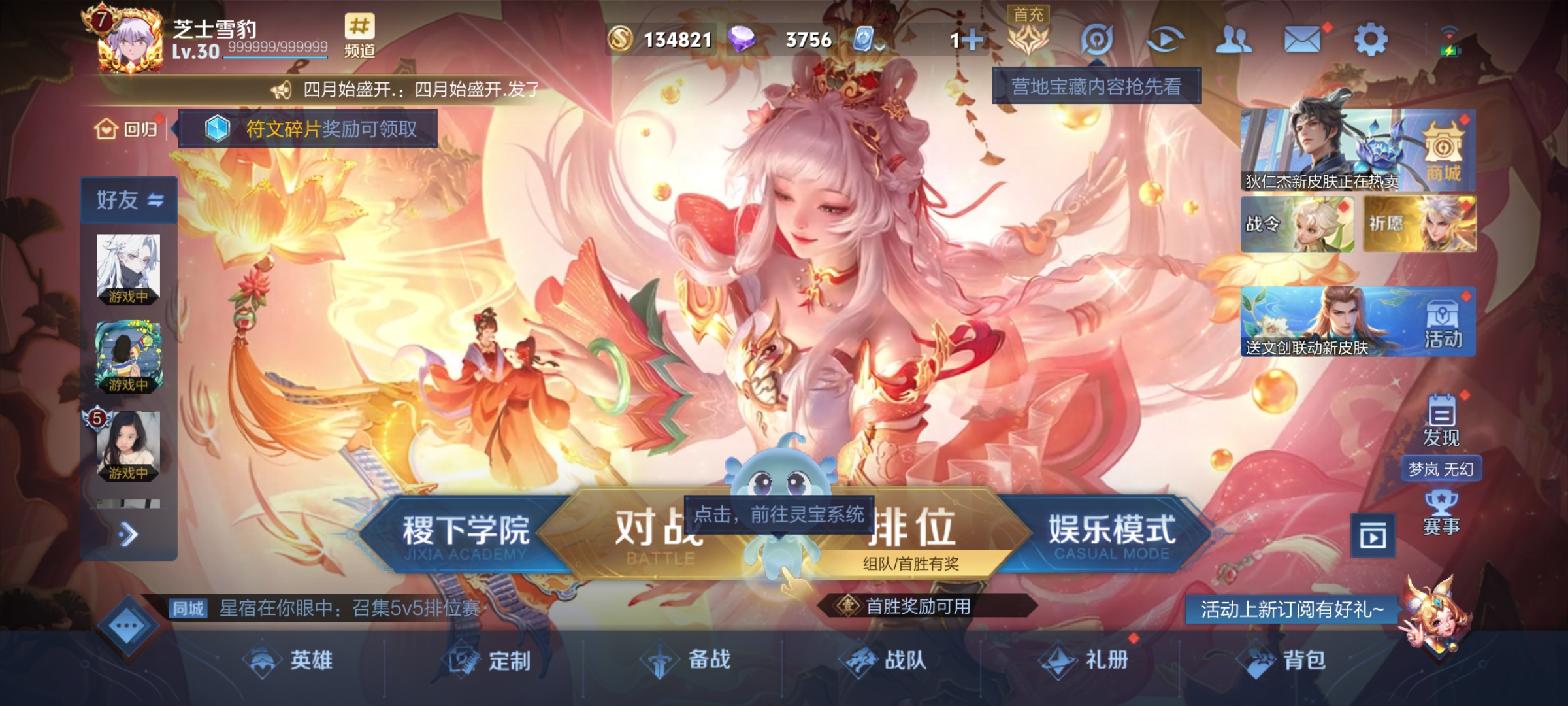 - [11575599]V7 1典藏 1传说 124英雄 284皮肤 可修改实名 优质装备:活力突击 珍宝阁皮:妄想食味,优雅恋人,女武神 限定皮:逐霄战戟,鸣野蒿,至尊宝,五谷丰年,青龙志(铠年限),梁祝,李小龙,朱雀志(守约年限),如梦令-后羿,一生所爱,大圣娶亲 史诗皮:星界战将,石田雨龙,蒙犽顽岩魄,百相守梦-黄忠,白龙吟,千年之狐,江河有灵,百解令(蒙犽),高渐离燃音魔法,蒙恬荣光圣徽,冰冠公主,青蛇,电玩·爆裂旋风,末日机甲-吕布,猫狗日记-孙策,乱世虎臣,水果甜心,天才门将,星夜王子,心灵骇客,功夫厨神,德古拉伯爵,暗隐猎兽者,鬼剑武藏,地狱岩魂,纤云弄巧,拒霜思,缤纷独角兽,乘风破浪,逐浪之夏,水晶猎龙者,曙光守护者,箭羽风息,金属风暴,原初追逐者,圣诞狂欢,圣诞恋歌,鹰眼统帅,魅力维加斯,黎明之约,无心