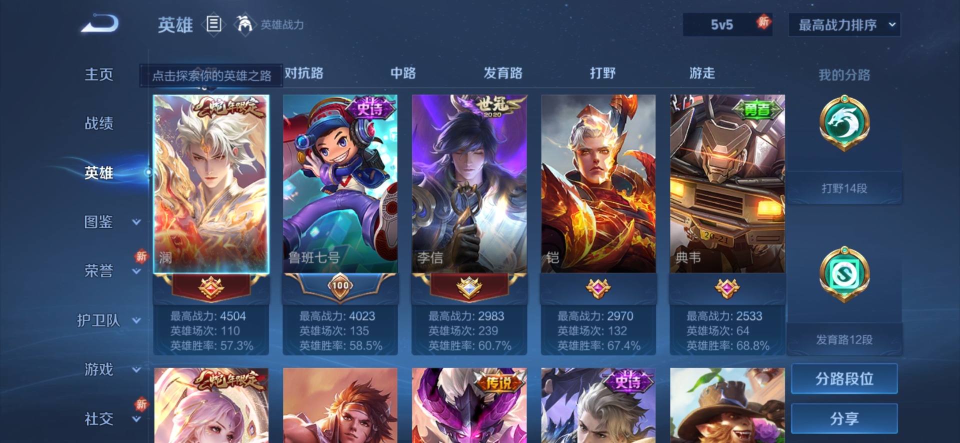 - [8956578]实名: 可修改 贵族等级: V7 英雄数: 123 皮肤数: 228 荣耀水晶: 无限飓风号 传说皮: 云鹰飞将,绛天战甲,一念神魔,无双飞将,幻光神枪 限定皮: 飞衡,青龙志,武陵仙君,如梦令-后羿,高山流水,孙行者,傲雪梅枪,百木心枪,五谷丰年,神器·万象笔,山海·玄木吟,鸣野蒿,愿照·山河定,愿照·岁时盈