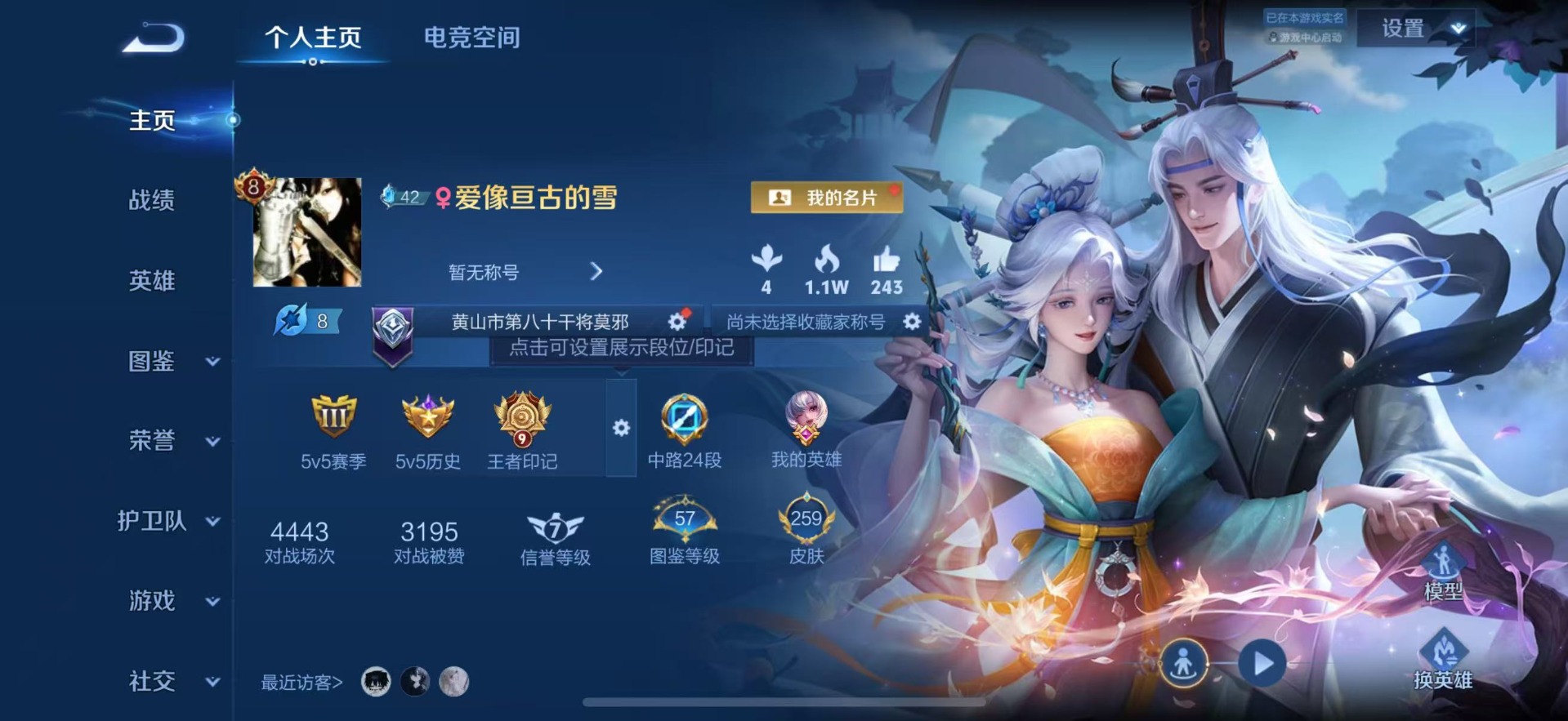 - [12075165]V10 8典藏 4无双 1珍品传说 39传说 125英雄 416皮肤 可修改实名 优质装备:天鹅之梦(小乔典藏),无限飓风号(高达),鸣剑·曳影,星域神启(倪克斯贼亮),九霄神辉(木兰典藏),赤影疾锋,银白咏叹调(倪克斯侍卫),神鉴启示录,小乔时之魔女(小乔无双),离恨烟(公孙离无双),雪境奇遇-甄姬,天机白泽,器灵·落星盏,黄金狮子座,黄金射手座,黄金白羊座,云霓雀翎,末日机甲-孙尚香(绿蚂蚱),地狱火,淬星耀世,超时空战士-狄仁杰,挚爱之约,碎云,山海·炽霜斩(李信年限),山海·琳琅生(小乔年限),山海·苍雷引(电光曜子),浮生妄,电玩·雷克斯,大乔-时之奇旅,艾琳觅芳踪,金乌负日,黄金天蝎座,玄雷天君,涂山容容 传说皮:乘龙·问璇玑(孙尚香年限),乘龙·铭钟鼎(赵云年限),乘龙·淬吴钩(孙策年限),死亡执政官,九山相柳,幻光神枪 珍宝阁皮:万物之道,蔷薇恋人,玩趣恶龙 限定皮:愿照·九州拓(澜年限),愿照·众生和(妲己年限),鸣野蒿,白虎志(电光耗子),太华(伽罗年限),梅西,前尘镜,绯月行,飞衡(韩信年限),玄嵩(庄周年限),山海·碧波行(瑶年限),瑞麟志(木兰年限),五谷丰年,青龙志(铠年限),幽恒(沐浴露),梁祝,逐梦之翼,岱宗(典韦年限),李小龙,玄武志(苏烈年限),朱雀志(守约年限),永曜之星,辉光之辰,孙行者,猪悟能,一生所爱,大圣娶亲,引擎之心,寅虎·御盾(廉颇年限),寅虎·赤拳(老虎年限),百木心枪,启示之音,深海之息(深海大菠萝),枫霜尽,时之奇旅-妲己,梦圆繁星,山海·玄木吟(马可年限) 史诗皮:化蝶舞,灵蛊蚀心,星界战将,龙之律动,石田雨龙,百相守梦-周瑜,戍鼓铭心,茶境仙,幻珠鲛人,破空之剑,战舞者,东方月初,琥珀纪元伽罗,蔬乡物语(鲁班七号),曹操夜都魔契,乘龙·聚宝船(安琪拉年限),乘龙·忆丹青(大乔年限),百相守梦-黄忠,织梦人,遇见神鹿,紫霞仙子,苍穹之光,电玩小子(小书包),白龙吟,黄金分割率,特工魅影,千年之狐,永昼,江河有灵,雪夜绮愿(周瑜),百解令(蒙犽),高渐离燃音魔法,无限星赏官,冰冠公主,青蛇,偶像歌手,白蛇,晚萤,电玩·兔顽号,电玩·爆裂旋风,暗夜猫娘,龙骑士(小龙虾),末日机甲-吕布,猫狗日记-孙策,猫狗日记-大乔,时之恋人-孙尚香,乱世虎臣,节奏热浪,修罗,女仆咖啡,摇滚巨星,水果甜心,绅士熊喵,天才门