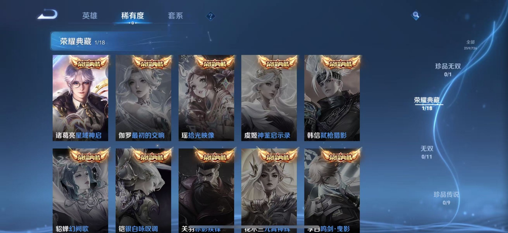 - PX_2056356-贵族8/皮肤161/传说22/史诗43/英雄107/曜器灵螭龙剑/特工战影/时之恋人男/一念神魔/武圣/启明星使/炽阳神光/无双飞将/怒海麟威/张飞百相守梦/电玩雷克斯/灼幽烈阳/妄想实况/妄想奇谈/鹤归松栖女/惊梅引/遇见神鼓/影龙天霄/时之奇旅鲁班/时之奇旅大乔/逐花归海/桑启鸣野蒿/裴擒虎祥瑞亨通/澜愿照九州拓/姜子牙天穹之誓/狄仁杰阴阳师/赵云皇家上将/时之奇旅鲁班/