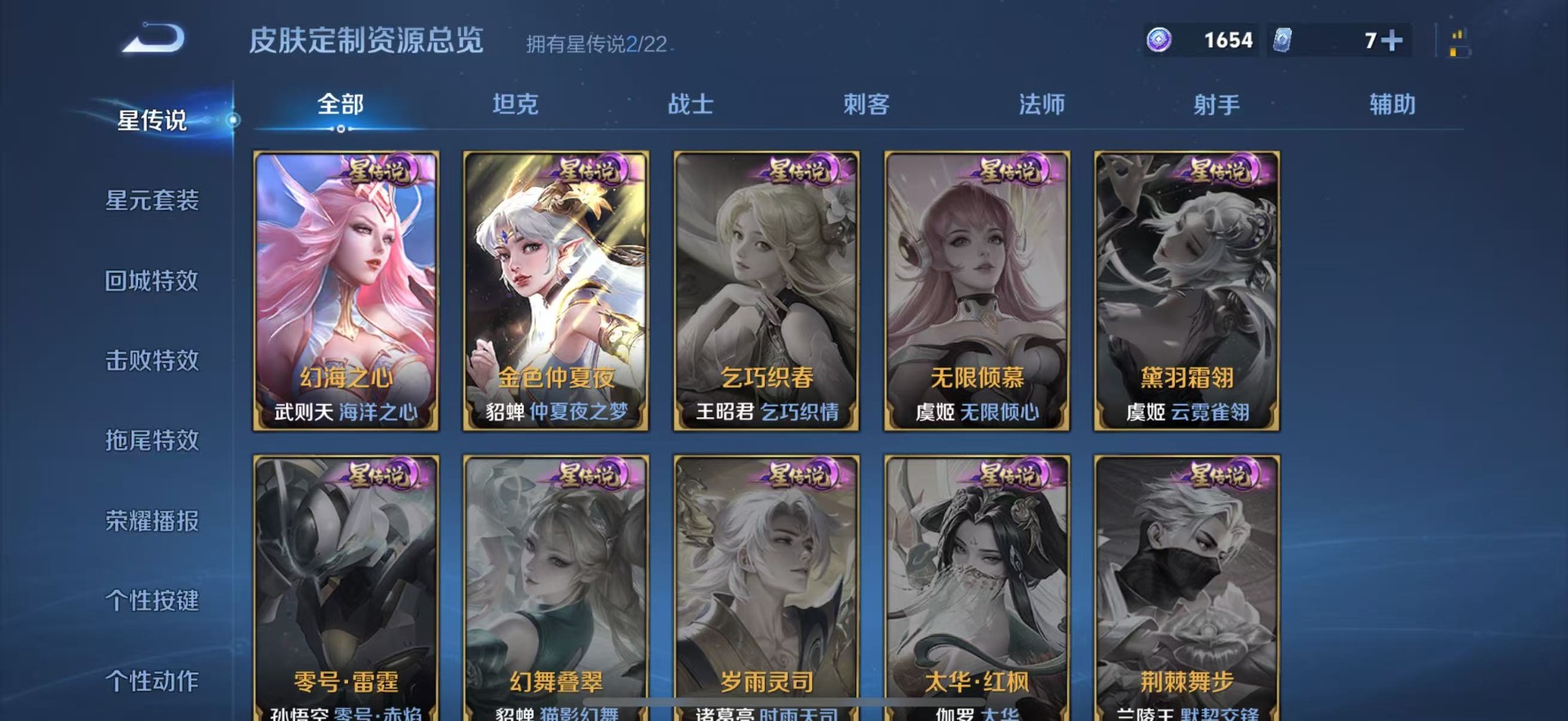 小乔天鹅之梦,孙尚香杀手不太冷,鲁班七号星空梦想,武则天倪克斯神谕,诸葛亮星域神启,花木兰九霄神辉,李白鸣剑·曳影,芈月大秦宣太后,程咬金活力突击,孙悟空全息碎影,关羽赤影疾锋