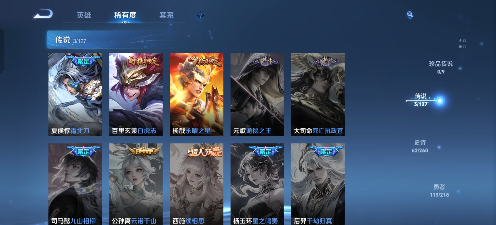 - PX_2090024-贵族6/皮肤206/传说5/史诗55/英雄123/蔷薇恋人/特工战影/地狱火/黄金射手座/黄金狮子座/山海苍雷引/桑启鸣野蒿/姜子牙天穹之誓/杨戬破阵退雄兵/狄仁杰阴阳师/赵云皇家上将/蔷薇恋人/高渐离死亡摇滚/元歌无心/朔风刀/穷奇/暗影游猎/山海玄木吟/狄仁杰魔术师/万华元夜/项羽海滩派对/醍醐杖/演武夺筹/驱傩正仪/杨玉环遇见飞天/黎明之约/蔡文姬繁星吟游/原初探秘者/