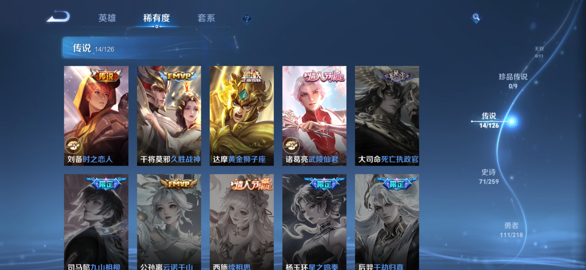 刘备时之恋人,赵云淬星耀世,干将莫邪久胜战神,李信一念神魔,孙策挚爱之约,达摩黄金狮子座,吕布曦玄引,狄仁杰夜礼服假面,曜云鹰飞将,云缨幻光神枪