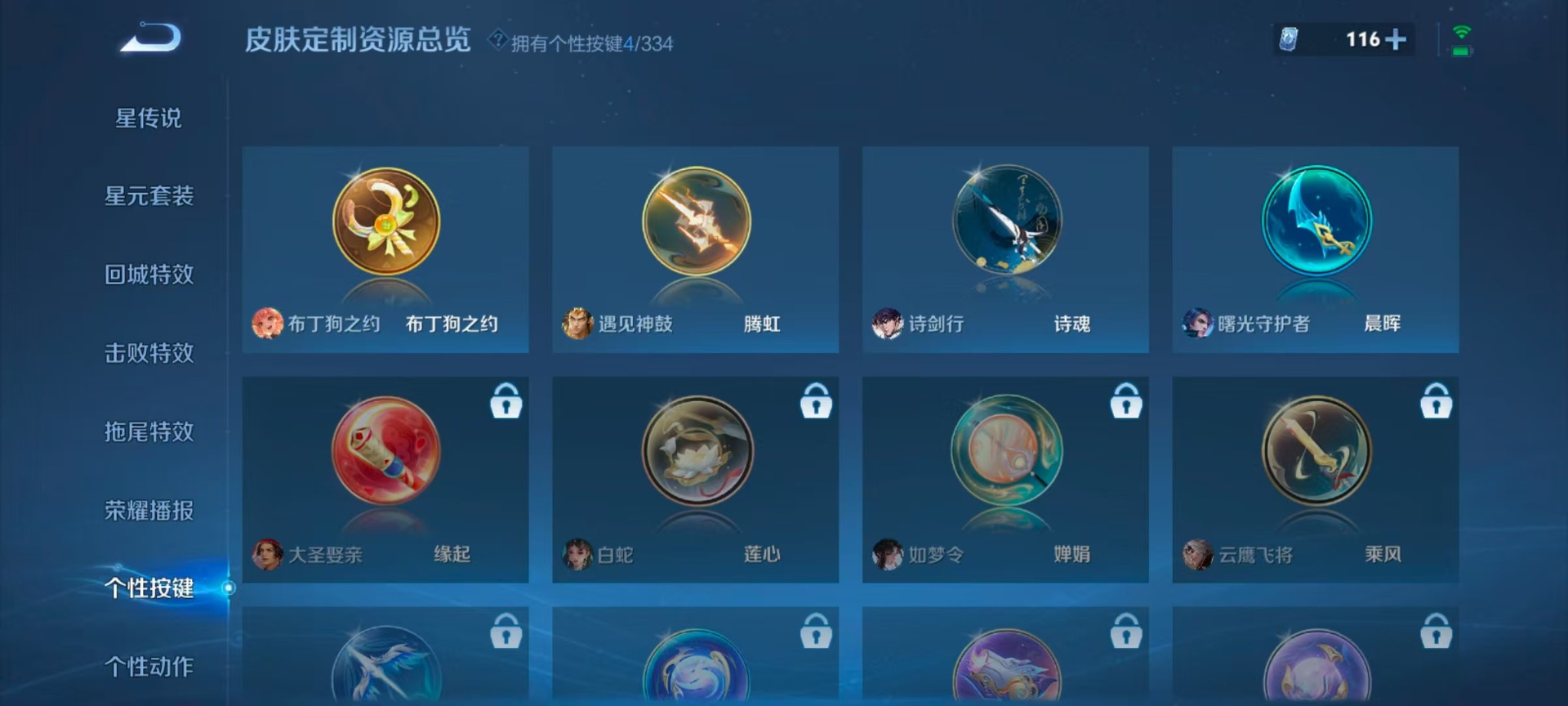 夏侯惇朔风刀,老夫子醍醐杖,沈梦溪星空之诺,沈梦溪大漠名商,盾山御銮,曹操烛龙,苏烈千军破阵,典韦穷奇,达摩沙漠行僧,牛魔御旌,鲁班七号狮舞东方,吕布猎兽之王,兰陵王金庭之子,裴擒虎擒涛扼浪,鲁班大师探海日志,明世隐疑决卦,马可波罗暗影游猎,白起狰,鬼谷子原初探秘者,张良古海寻踪,桑启海盐诗旅,狄仁杰万华元夜,芈月重明,程咬金演武夺筹,李元芳银河之约,李元芳云中旅人,弈星混沌棋,米莱狄御霄,钟馗神迹守卫,钟馗驱傩正仪,狂铁御狮,太乙真人饕餮