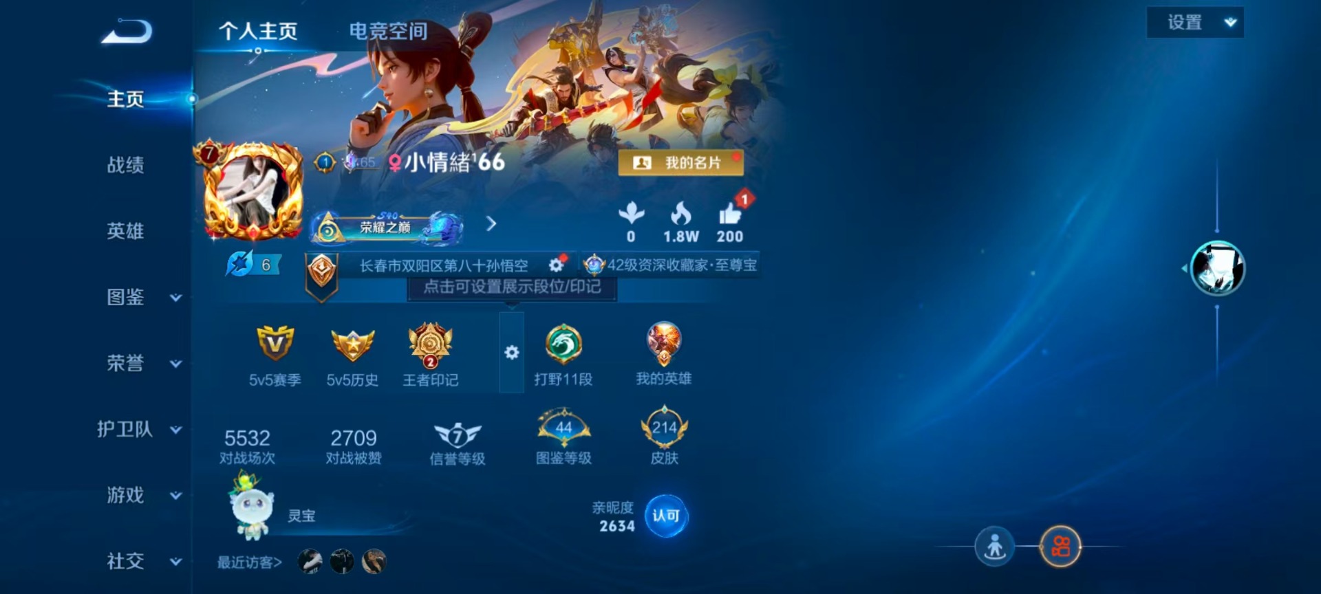 - PX_2093924-安卓Q 【可二次】 英雄数量:122 皮肤数量:113 贵族等级:贵族V3 传说品质3 史诗品质22愿照·九州拓 久胜战神 鸣野蒿 鬼剑武藏 魅力维加斯 幽灵船长 乘风破浪 金属风暴 石田雨龙 江河有灵 猫狗日记女 猫狗日记男 水晶猎龙者 白龙吟 电玩小子 紫霞仙子 顽趣梦奇 原初追逐者 李小龙 冰冠公主 冰雪圆舞曲 电玩·爆裂旋风 鹰眼护卫 水果甜心 节奏热浪 妄想食味 程