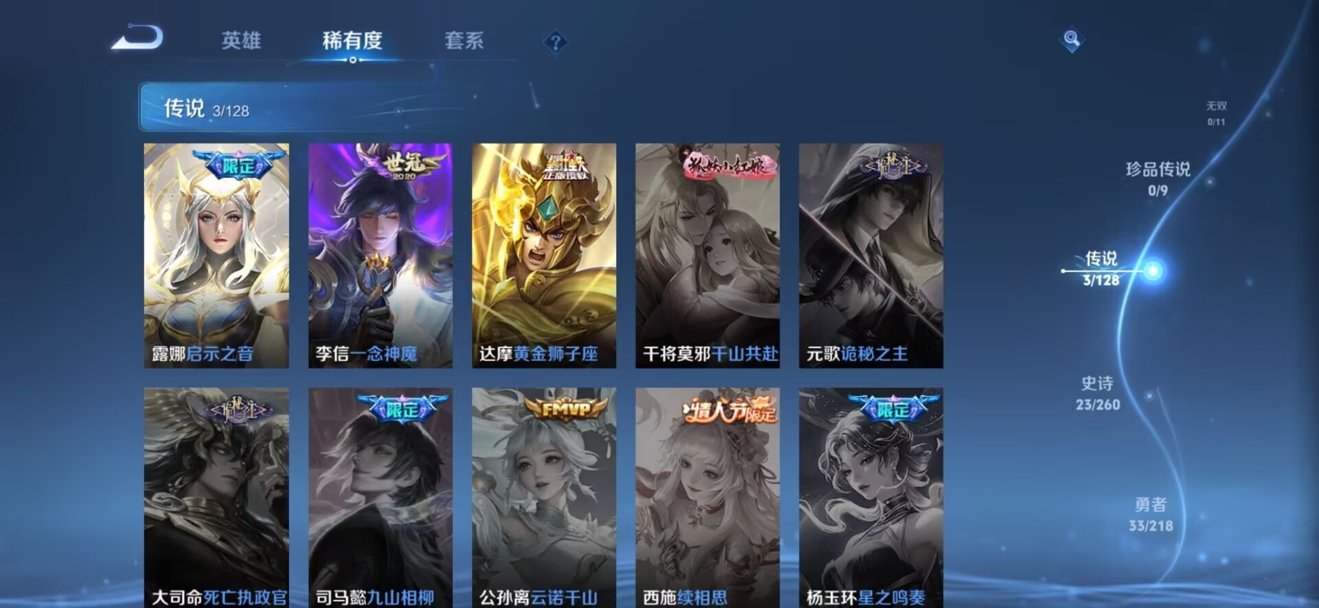 花木兰瑞麟志,苏烈玄武志,韩信逐梦之影,百里守约朱雀志,露娜启示之音,露娜一生所爱