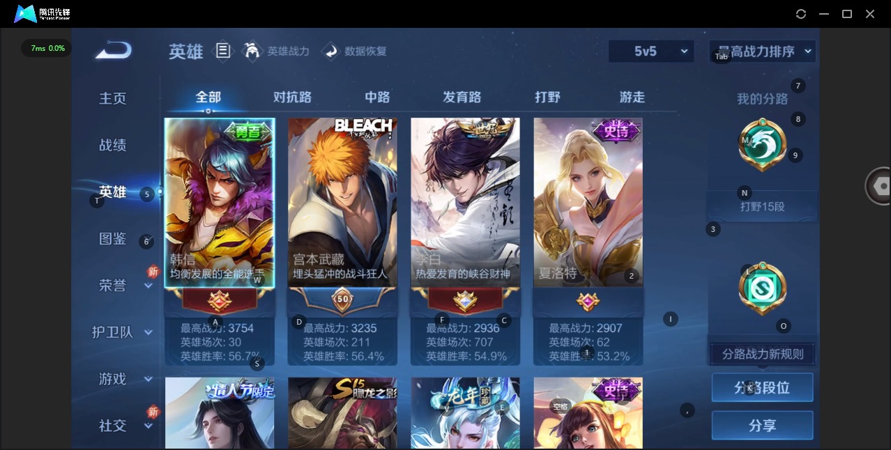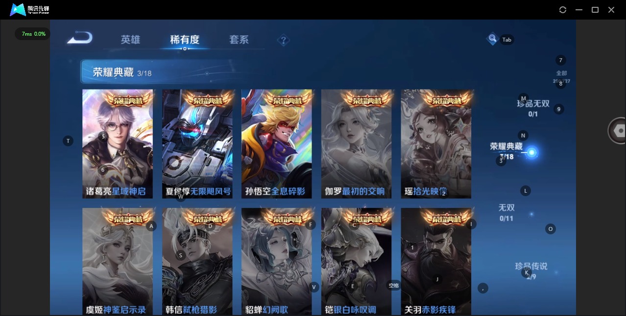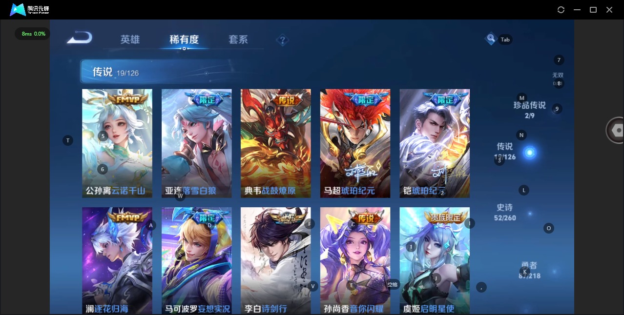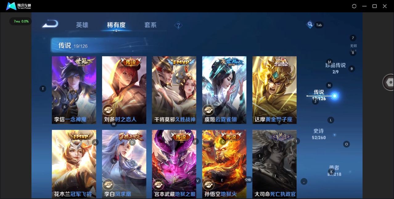 - [12076732]V8 1典藏 17传说 125英雄 277皮肤 可修改实名 优质装备:神鉴启示录,黄金狮子座,黄金射手座,冠军飞将,云鹰飞将(小将军),一念神魔,地狱火,胖达荣荣,时之恋人-刘备(电焊工),遇见胡旋,浮生妄,妄想奇谈 传说皮:幻光神枪 珍宝阁皮:妄想食味,胡桃夹子,蔷薇恋人,女武神 限定皮:至尊宝,白虎志(电光耗子),太华(伽罗年限),异界灵契(白毛香),时之彼端,时雨天司(水龙头),神威(电光马子),飞衡(韩信年限),高山流水,五谷丰年,冰锋战神,幽恒(沐浴露),岱宗(典韦年限),天狼绘梦者,李小龙,朱雀志(守约年限),如梦令-嫦娥,如梦令-后羿,真爱至上,孙行者,猪悟能,大圣娶亲,青春决赛季,冰霜恋舞曲,神奇女侠,匿光追影者,山海·玄木吟(马可年限) 史诗皮:石田雨龙,千年之狐,高渐离燃音魔法,蒙恬荣光圣徽,冰冠公主,电玩·爆裂旋风,百相守梦(关羽),末日机甲-吕布,猫狗日记-孙策,猫狗日记-大乔,乱世虎臣,修罗,摇滚巨星,水果甜心,天才门将,时之奇旅-安琪拉,功夫厨神,德古拉伯爵,暗隐猎兽者,鬼剑武藏,心灵战警,舞动绿茵,纤云弄巧,繁星吟游(呼啦呼啦),拒霜思,乘风破浪,逐浪之夏,水晶猎龙者,曙光守护者,金属风暴,原初追逐者,鹰眼统帅,王者之锤,魅力维加斯,黎明之约,无心,未来纪元-赵云