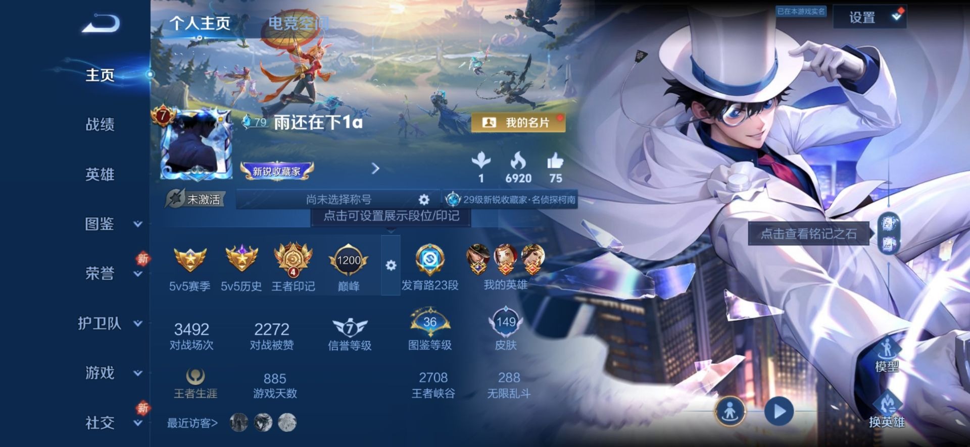 [11472065]V7 1无双 2珍品传说 7传说 116英雄 149皮肤 可修改实名 优质装备:器灵·螭龙剑,江户川柯南,怪盗基德,末日机甲-孙尚香(绿蚂蚱),涂山容容 传说皮:典韦战鼓燎原,云诺千山,幻光神枪 珍宝阁皮:妄想食味 限定皮:愿照·九州拓(澜年限),愿照·岁时盈(虞姬年限),逐霄战戟,鸣野蒿 史诗皮:鸭鸭历险记-刘禅,器灵·浮梦炉,化蝶舞,龙之律动,雪豹·霜爪,石田雨龙,茶境仙,蔬乡物语(鲁班七号),乘龙·聚宝船(安琪拉年限),百相守梦-百里守约,百相守梦-黄忠,遇见神鹿,紫霞仙子,特工魅影,千年之狐,无限星赏官,青蛇,电玩·爆裂旋风,时之恋人-孙尚香,节奏热浪,女仆咖啡,水果甜心,心灵骇客,暗隐猎兽者,幽灵船长,鬼剑武藏,心灵战警,地狱岩魂,逐浪之夏,水晶猎龙者,曙光守护者,箭羽风息,金属风暴,鹰眼统帅,魅力维加斯,未来纪元-赵云