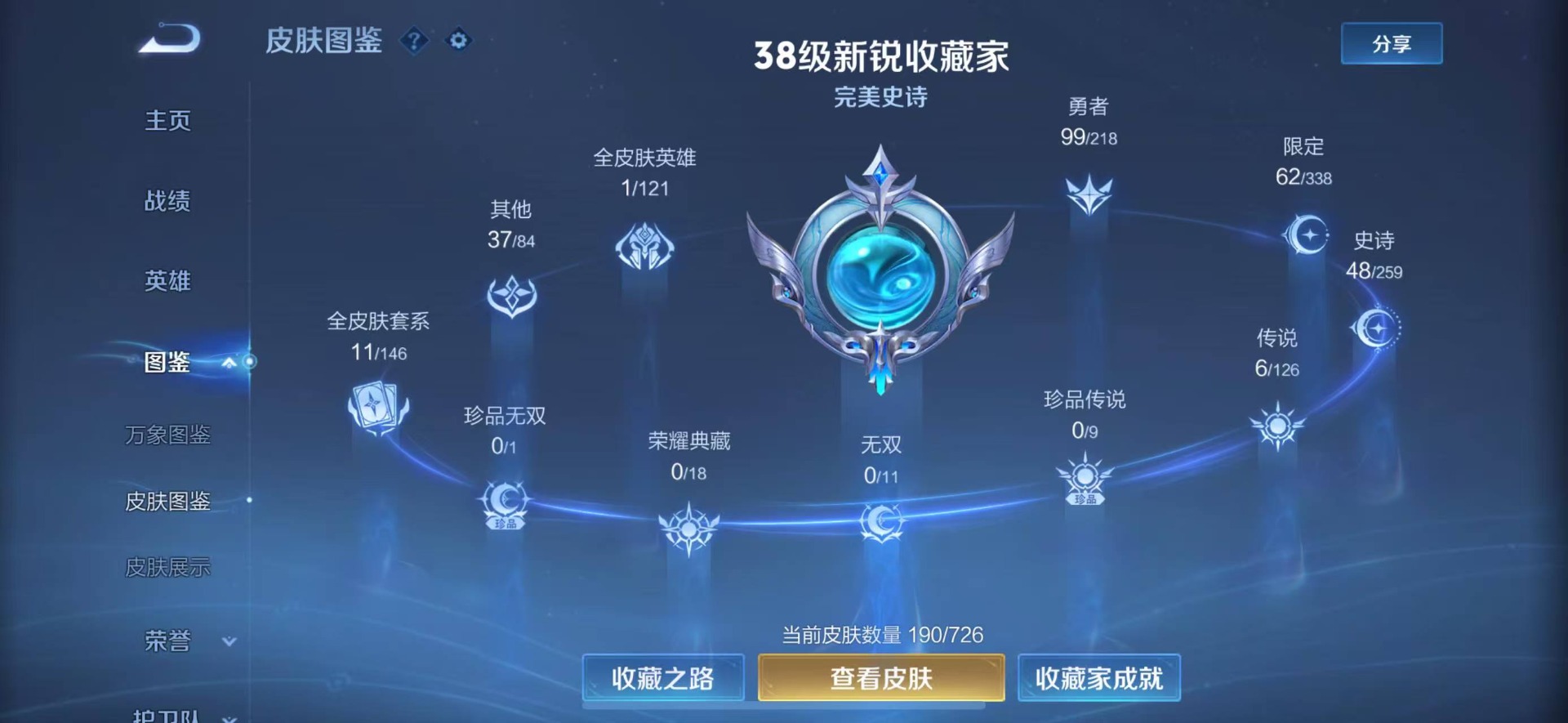 - [12033056]【商品标题】:苹果Q-V8-至尊星耀II段位-124英雄-251皮肤-2典藏-0珍品无双-0无双-0珍品传说-15传说-82史诗 【荣耀典藏】:李白鸣剑曳影,花木兰九霄神辉 【内测皮肤】:孙尚香蔷薇恋人,艾琳女武神,狂铁特工战影 【传说皮肤】:狄仁杰超时空战士,孙尚香末日机甲,李白凤求凰,达摩黄金狮子座,刘备时之恋人,李信一念神魔,曜云鹰飞将,孙悟空零号赤焰,虞姬启明星使,镜炽阳神光,诸葛亮时雨天司,赵云淬星耀世,裴擒虎寅虎赤拳,李信山海炽霜斩,桑启鸣野蒿 【限定皮肤】:姜子牙天穹之誓,狄仁杰阴阳师,赵云皇家上将,墨子神迹守卫,孙尚香蔷薇恋人,鲁班七号狮舞东方,庄周高山流水,阿轲迷踪丽影,孙膑天狼运算者,元歌云间偶戏,元歌无心,夏侯惇朔风刀,马可波罗逐梦之星,马可波罗暗影游猎,狄仁杰魔术师,狄仁杰万华元夜,达摩星际陆战队,达摩沙漠行僧,项羽海滩派对,老夫子醍醐杖,老夫子航海奇遇记,关羽冰锋战神,程咬金演武夺筹,刘邦夺宝奇兵,韩信逐梦之影,韩信飞衡,兰陵王金庭之子,亚瑟潮玩骑士王,孙悟空至尊宝,孙悟空零号赤焰,李元芳银河之约,李元芳云中旅人,虞姬霸王别姬,虞姬启明星使,钟馗驱傩正仪,干将莫邪冰霜恋舞曲,雅典娜单词大作战,雅典娜黎明之约,蔡文姬繁星吟游,鬼谷子原初探秘者,鬼谷子五谷丰年,诸葛亮时雨天司,苏烈千军破阵,百里玄策原初追逐者,弈星混沌棋,梦奇顽趣,公孙离蜜橘之夏,沈梦溪星空之诺,沈梦溪大漠名商,明世隐疑决卦,裴擒虎李小龙,裴擒虎寅虎赤拳,裴擒虎擒涛扼浪,米莱狄胡桃异想国,云中君纤云弄巧,李信山海炽霜斩,伽罗天狼溯光者,猪八戒西部大镖客,上官婉儿梁祝,上官婉儿天狼绘梦者,嫦娥暖冬兔眠,蒙犽狂想玩偶喵,鲁班大师探海日志,桑启海盐诗旅,暃星界游侠,艾琳女武神,阿古朵江河有灵,张良古海寻踪,蒙恬荣光圣徽,鬼谷子天穹祈灯,伽罗琥珀纪元,姬小满妄想食味,沈梦溪龙舞盛年,刘邦剑破天穹,周瑜熔金海岸 【年限皮肤】:裴擒虎寅虎赤拳,李白凤求凰,诸葛亮时雨天司,韩信飞衡,马超神威,李信山海炽霜斩 【赛季限定】:夏侯惇朔风刀,狄仁杰万华元夜,达摩沙漠行僧,老夫子醍醐杖,程咬金演武夺筹,兰陵王金庭之子,张良古海寻踪,李元芳云中旅人,钟馗驱傩正仪,雅典娜黎明之约,鬼谷子原初探秘者,苏烈千军破阵,百里玄策原初追逐者,弈星混沌棋,梦奇顽趣,沈梦溪大漠名商,明世隐疑决卦,裴擒虎擒涛扼浪,鲁