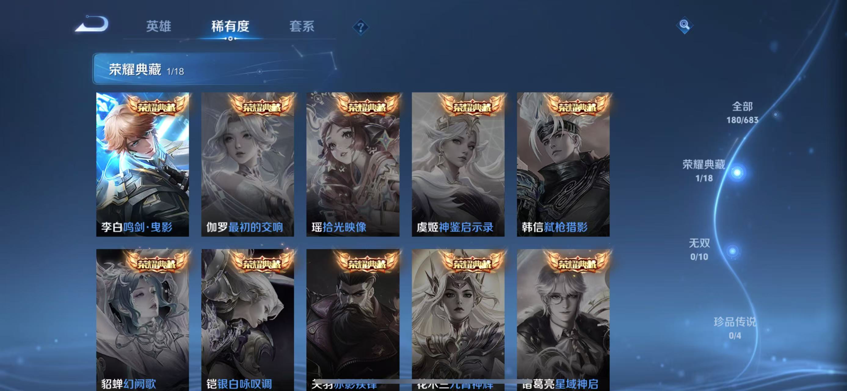 [11470491]李白典藏,武则天,小将军,澜逐花归海,紫霞,-可二次-121英雄-180皮肤-1典藏-12传说-55史诗 绯月行-不知火舞 神威-马超 冰冠公主-雅典娜 街头霸王-韩信