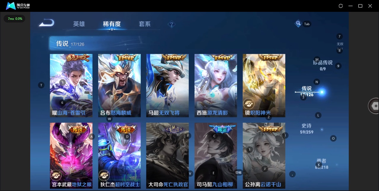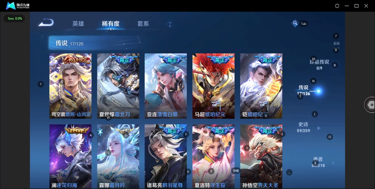 - PX_2111835-Q/至尊星耀/185皮肤/123英雄/0典藏/0珍品无双/0无双/0珍品传说/10传说/38史诗/7稀有英雄 【10 传说皮肤】无限倾心 虞姬,无双飞将 马超,零号·赤焰 孙悟空,地狱火 孙悟空,地狱之眼 宫本武藏,炽阳神光 镜,山海·炽霜斩 李信,一念神魔 李信,幻光神枪 云缨,愿照·山河定 司空震, 【38 史诗皮肤】蔬乡物语 鲁班七号,燃音魔法 高渐离,猫狗日记 大乔,
