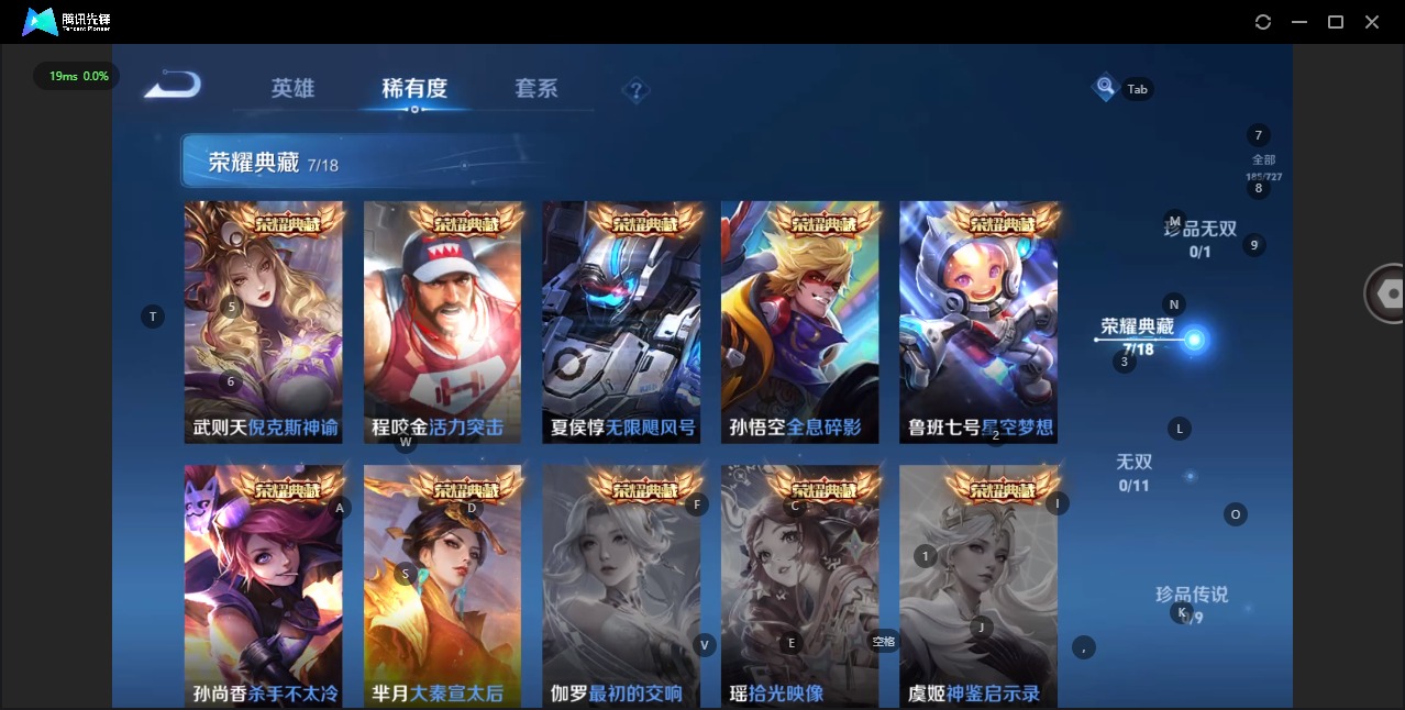 伽罗太华,后羿辉光之辰,裴擒虎李小龙,上官婉儿梁祝,上官婉儿天狼绘梦者,孙悟空孙行者,孙悟空大圣娶亲,孙悟空至尊宝,妲己时之彼端,韩信飞衡