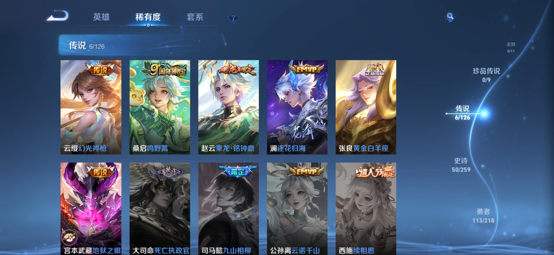 - [11553781]V10 4典藏 1无双 71传说 126英雄 455皮肤 典藏英雄武则天 可修改实名 优质装备:鸣剑·曳影,全息碎影(猴子典藏),九霄神辉(木兰典藏),银白咏叹调(倪克斯侍卫),碎月剑心(李白无双),黄金狮子座,黄金射手座,冠军飞将,云鹰飞将(小将军),绛天战甲(鸡嘴战神),黄金白羊座,久胜战神,炽阳神光,一念神魔,云霓雀翎,末日机甲-孙尚香(绿蚂蚱),地狱火,仲夏夜之梦(大飞蛾),音你心动-小乔,零号·赤焰,海洋之心,地狱之眼,音你心动-周瑜,胖达荣荣,李逍遥,时之恋人-刘备(电焊工),淬星耀世,超时空战士-狄仁杰,末日机甲-孙策,花朝如约(花篮子),挚爱之约,无双飞将,碎云,神器·狴犴令,山海·炽霜斩(李信年限),山海·琳琅生(小乔年限),山海·苍雷引(电光曜子),燃星之曲,画中仙,追逃游戏(安琪拉),电玩·雷克斯,小动物乐团,霜月吟,澜逐花归海,艾琳觅芳踪,金乌负日,黄金天蝎座,玄雷天君 传说皮:乘龙·问璇玑(孙尚香年限),乘龙·铭钟鼎(赵云年限),乘龙·淬吴钩(孙策年限),貂蝉曦玄引,吕布曦玄引,落雪白狼,幻光神枪 珍宝阁皮:女武神,玩趣恶龙 限定皮:愿照·九州拓(澜年限),愿照·千秋盛(女娲年限),鸣野蒿,至尊宝,白虎志(电光耗子),凤凰于飞,太华(伽罗年限),异界灵契(白毛香),星穹之声,绯月行,时之彼端,白晶晶,时雨天司(水龙头),神威(电光马子),飞衡(韩信年限),玄嵩(庄周年限),山海·碧波行(瑶年限),无限倾心-项羽,诗剑行,无限倾心-虞姬,齐天大圣,怒海麟威,降魔,五谷丰年,青龙志(铠年限),冰锋战神,幽恒(沐浴露),武圣,天狼运算者,游园惊梦,御风骁将(吕布年限),天狼狩猎者,龙胆,逐梦之星,烈魂,岱宗(典韦年限),虎魄,奔雷神使(牛魔年限),祈雪灵祝(雪兔子),天狼绘梦者,李小龙,朱雀志(守约年限),永曜之星,如梦令-嫦娥,如梦令-后羿,霸王别姬-项羽,霸王别姬-虞姬,默契交锋-兰陵王,默契交锋-花木兰,孙行者,一生所爱,大圣娶亲,天魔缭乱,冰霜恋舞曲,云端筑梦师,神奇女侠,枫霜尽,时之奇旅-妲己,神器·万象笔,梦圆繁星,山海·玄木吟(马可年限) 史诗皮:星界战将,灵蛊蚀心,龙之律动,石田雨龙,茶境仙,海诺心动手记,东方月初,芈月浮光幕影,上官婉儿群星魔术团,奇遇星旅,曹操夜都魔契,超元猎域,乘龙·聚宝船(安琪拉年限),乘龙·忆丹青(大