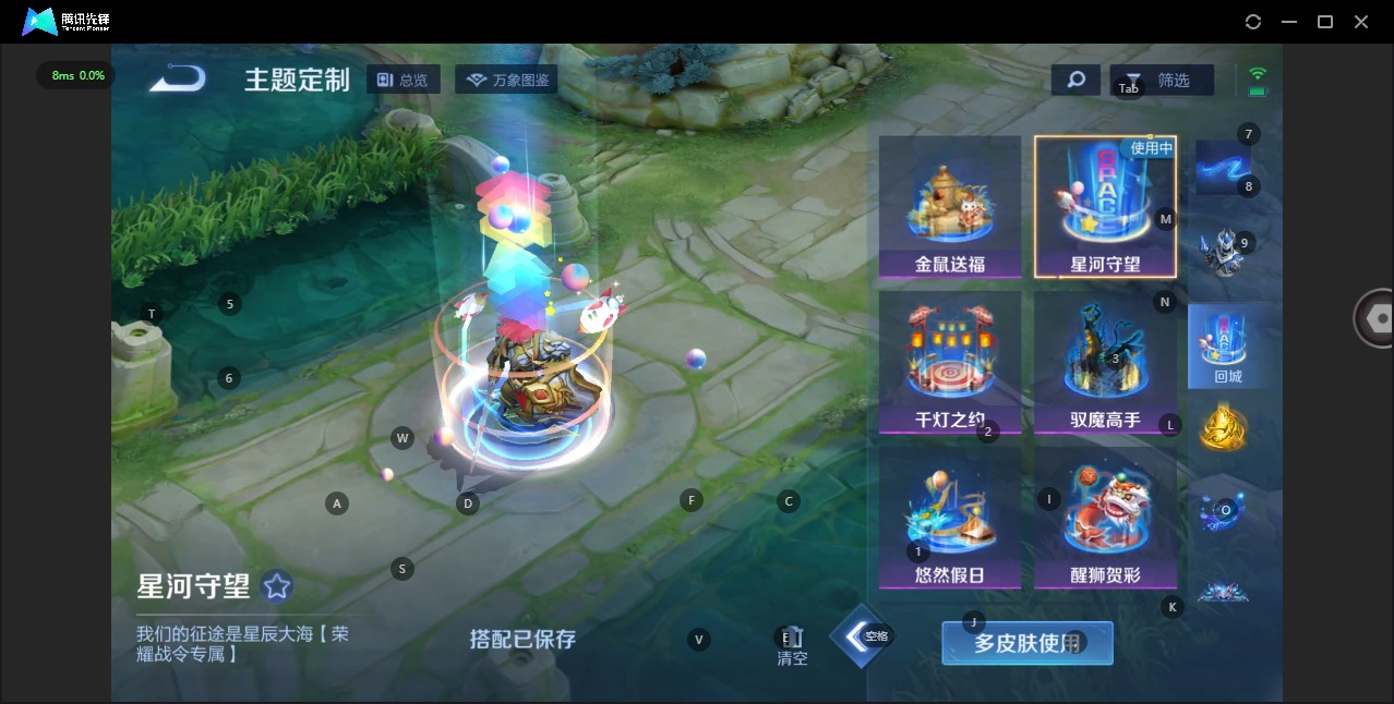 夏侯惇朔风刀,沈梦溪星空之诺,沈梦溪大漠名商,盾山御銮,曹操烛龙,孙膑妖精王,苏烈千军破阵,典韦穷奇,典韦蓝屏警告,达摩沙漠行僧,牛魔御旌,鲁班七号狮舞东方,吕布猎兽之王,庄周蜃楼王,兰陵王金庭之子,裴擒虎擒涛扼浪,明世隐疑决卦,白起狰,亚瑟狮心王,鬼谷子原初探秘者,女娲朔望之晖,桑启海盐诗旅,狄仁杰万华元夜,嬴政白昼王子,芈月重明,扁鹊炼金王,李元芳银河之约,李元芳云中旅人,弈星混沌棋,虞姬凯尔特女王,米莱狄御霄,钟馗神迹守卫,钟馗驱傩正仪,狂铁御狮,太乙真人饕餮