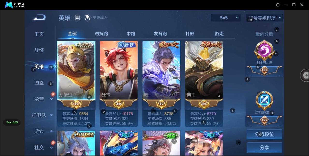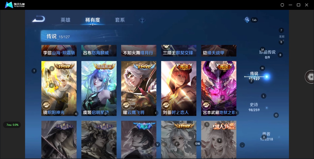 - [11497573]V7 4传说 122英雄 203皮肤 可修改实名 传说皮:地狱火,超时空战士-狄仁杰,电玩·雷克斯 珍宝阁皮:蔷薇恋人 限定皮:鸣野蒿,梁祝,李小龙,逐梦之光 史诗皮:星界战将,炽弈燎原,黄金分割率,特工魅影,千年之狐,江河有灵,高渐离燃音魔法,蒙恬荣光圣徽,晚萤,魅语,猫狗日记-孙策,节奏热浪,修罗,摇滚巨星,水果甜心,绅士熊喵,天才门将,星夜王子,心灵骇客,功夫厨神,德古拉伯爵,幽灵船长,鬼剑武藏,地狱岩魂,纤云弄巧,繁星吟游(呼啦呼啦),缤纷独角兽,乘风破浪,逐浪之夏,水晶猎龙者,曙光守护者,热力回旋,箭羽风息,金属风暴,圣诞狂欢,圣诞恋歌,鹰眼统帅,暗夜贵公子,黎明之约,顽趣-阿古朵,无心,玫瑰异探