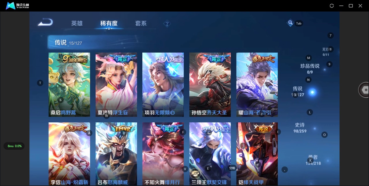 - [11630243]V10 7典藏 38传说 125英雄 389皮肤 典藏英雄武则天 可修改实名 连体和平 优质装备:天鹅之梦(小乔典藏),星空梦想(太空人),杀手不太冷,鸣剑·曳影,全息碎影(猴子典藏),星域神启(倪克斯贼亮),拾光映像(瑶典藏),黄金狮子座,黄金射手座,冠军飞将,云鹰飞将(小将军),绛天战甲(鸡嘴战神),黄金白羊座,猫影幻舞,久胜战神,炽阳神光,一念神魔,云霓雀翎,末日机甲-孙尚香(绿蚂蚱),地狱火,仲夏夜之梦(大飞蛾),音你心动-小乔,海洋之心,地狱之眼,飞鸢探春,音你心动-周瑜,胖达荣荣,李逍遥,乞巧织情,时之恋人-刘备(电焊工),游龙清影(小青龙),淬星耀世,超时空战士-狄仁杰,末日机甲-孙策,花朝如约(花篮子),挚爱之约,挚爱花嫁,无双飞将,艾琳觅芳踪 珍宝阁皮:胡桃夹子,万物之道,蔷薇恋人 限定皮:鸣野蒿,至尊宝,凤求凰(白切鸡),武陵仙君(小桃花),时雨天司(水龙头),神威(电光马子),飞衡(韩信年限),遇见飞天,高山流水,匿光决锋者,五谷丰年,青龙志(铠年限),游园惊梦,梁祝,御风骁将(吕布年限),龙胆,天狼溯光者,天狼绘梦者,李小龙,逐梦之影,朱雀志(守约年限),如梦令-嫦娥,霸王别姬-项羽,霸王别姬-虞姬,默契交锋-花木兰,孙行者,猪悟能,大圣娶亲,引擎之心,百木心枪,玉兔公主,启示之音 史诗皮:灵蛊蚀心,星界战将,遇见神鹿,紫霞仙子,苍穹之光,电玩小子(小书包),白龙吟,黄金分割率,特工魅影,千年之狐,永昼,江河有灵,魅语,蒙恬荣光圣徽,无限星赏官,冰冠公主,青蛇,偶像歌手,白蛇,晚萤,暗夜猫娘,龙骑士(小龙虾),末日机甲-吕布,猫狗日记-孙策,猫狗日记-大乔,时之恋人-孙尚香,乱世虎臣,节奏热浪,修罗,女仆咖啡,摇滚巨星,水果甜心,绅士熊喵,天才门将,星夜王子,心灵骇客,时之奇旅-安琪拉,功夫厨神,德古拉伯爵,暗隐猎兽者,幽灵船长,鬼剑武藏,暗渊魔法,心灵战警,乐园奇幻夜,天秀·启明,舞动绿茵,地狱岩魂,诗语江南,纤云弄巧,拒霜思,缤纷独角兽,乘风破浪,逐浪之夏,龙鼓争鸣,月团寄思,水晶猎龙者,曙光守护者,热力回旋,箭羽风息,唤灵魅影,金属风暴,原初追逐者,圣诞狂欢,圣诞恋歌,鹰眼统帅,王者之锤,暗夜贵公子,魅力维加斯,黎明之约,雪上飞焰,赏金猎手,奇遇舞章,天秀·音浪,无心,