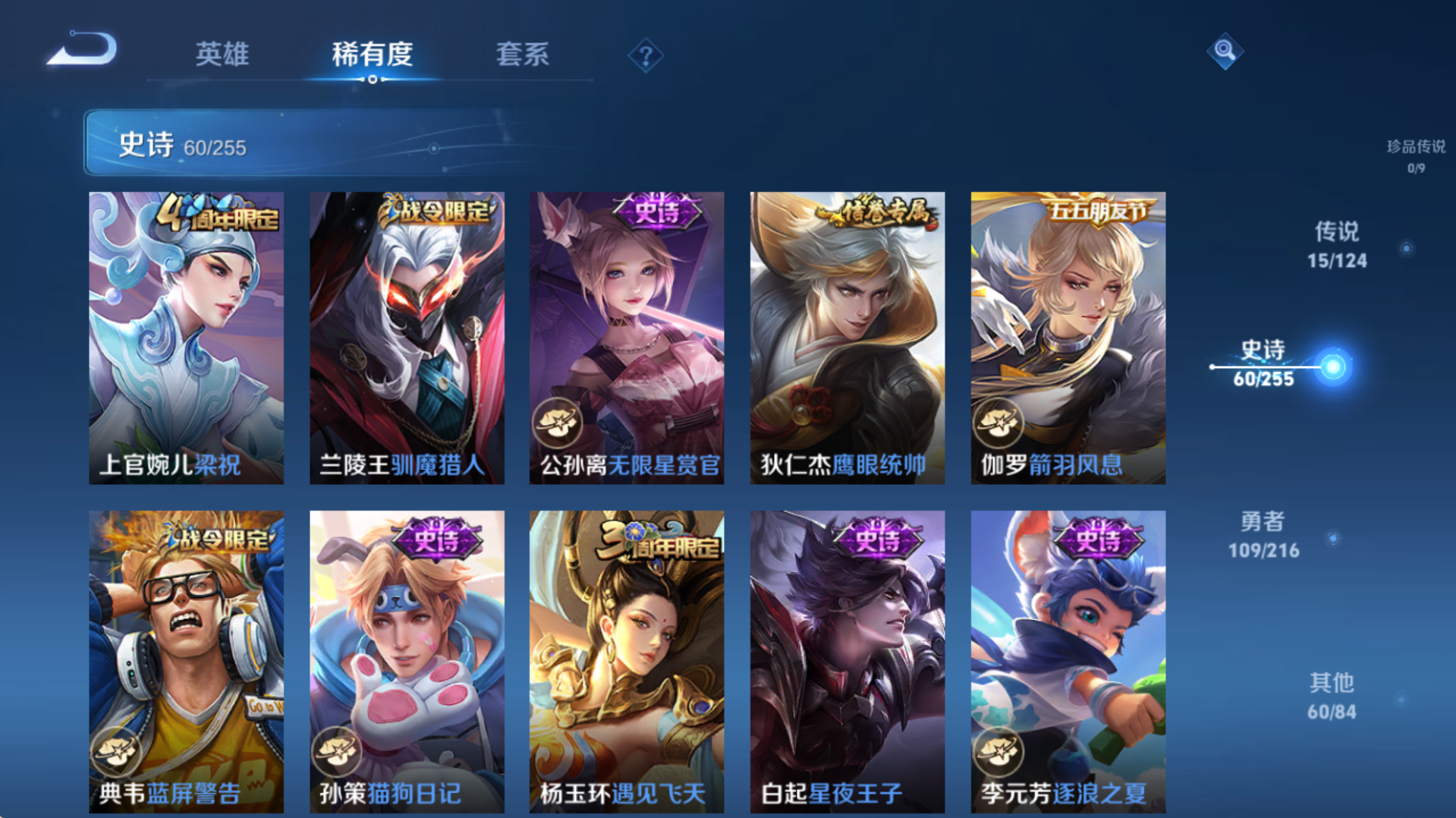- PX_2086024-实名: 可修改 贵族等级: V4 英雄数: 94 皮肤数: 67 传说皮: 乘龙·淬吴钩,典韦战鼓燎原