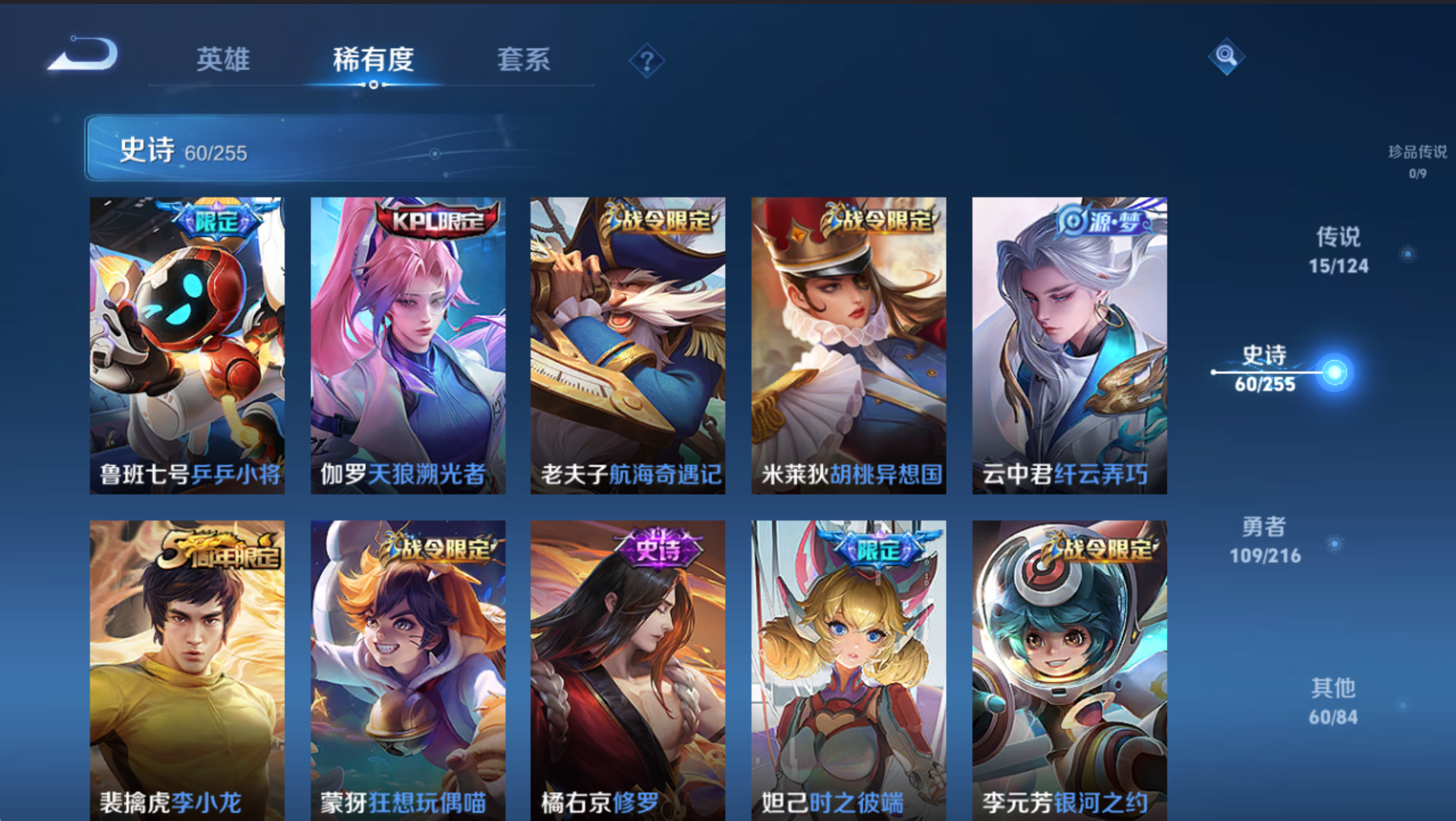 - PX_2064456-安卓Q-英雄数量:80-皮肤数量:71-传说品质2-史诗品质17仲夏夜之梦-零号赤焰-功夫厨神-魅力维加斯-皇家上将-暗隐猎兽者-乘风破浪-傲雪梅枪-特工魅影-缤纷独角兽-心灵骇客-顽趣梦奇-无心-五谷丰年-高山流水-冰冠公主-鹰眼护卫-水果甜心-节奏热浪-胡桃夹子-沉稳之力-海滩派对-乐园追猎者-海盐诗旅-云中旅人-蔚蓝守将-大漠名商-金庭之子-沙漠行僧-千军破阵-铁甲之心