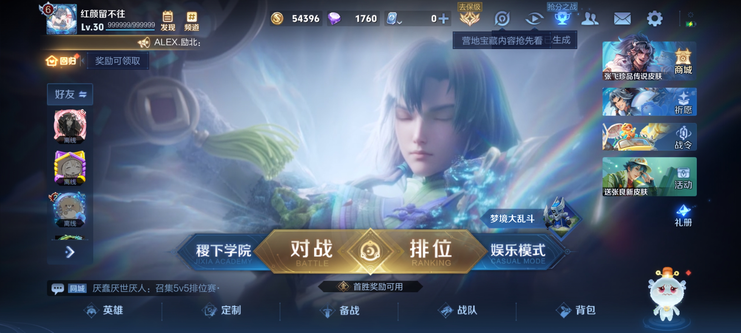 - [11605404]V7 1典藏 12传说 125英雄 264皮肤 可修改实名 优质装备:幻阙歌(貂蝉典藏),黄金狮子座,冠军飞将,一念神魔,零号·赤焰,地狱之眼,时之恋人-刘备(电焊工),音你闪耀(rap皮),鹤归松栖(云缨) 传说皮:云诺千山,幻光神枪 珍宝阁皮:优雅恋人,女武神 限定皮:愿照·千秋盛(女娲年限),至尊宝,白虎志(电光耗子),神威(电光马子),遇见飞天,高山流水,五谷丰年,冰锋战神,梁祝,御风骁将(吕布年限),烈魂,李小龙,如梦令-后羿,猪悟能,大圣娶亲 史诗皮:飞车小橘子,器灵·浮梦炉,化蝶舞,雪豹·霜爪,电玩小子(小书包),千年之狐,完美假期,匿光侦查者,偶像歌手,龙骑士(小龙虾),乱世虎臣,节奏热浪,修罗,女仆咖啡,摇滚巨星,水果甜心,时之奇旅-安琪拉,功夫厨神,德古拉伯爵,暗隐猎兽者,幽灵船长,鬼剑武藏,心灵战警,舞动绿茵,地狱岩魂,纤云弄巧,繁星吟游(呼啦呼啦),逐浪之夏,水晶猎龙者,金属风暴,原初追逐者,圣诞恋歌,鹰眼统帅,魅力维加斯,黎明之约,未来纪元-赵云