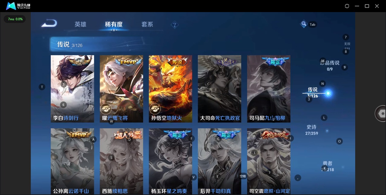 [11471392]V7 3传说 120英雄 159皮肤 可修改实名 优质装备:云鹰飞将(小将军),地狱火 珍宝阁皮:女武神 限定皮:飞衡(韩信年限),诗剑行,五谷丰年,梁祝,李小龙,孙行者,青春决赛季 史诗皮:特工魅影,千年之狐,江河有灵,百解令(蒙犽),冰冠公主,修罗,水果甜心,德古拉伯爵,暗隐猎兽者,纤云弄巧,金属风暴,圣诞狂欢,鹰眼统帅,暗夜贵公子,魅力维加斯