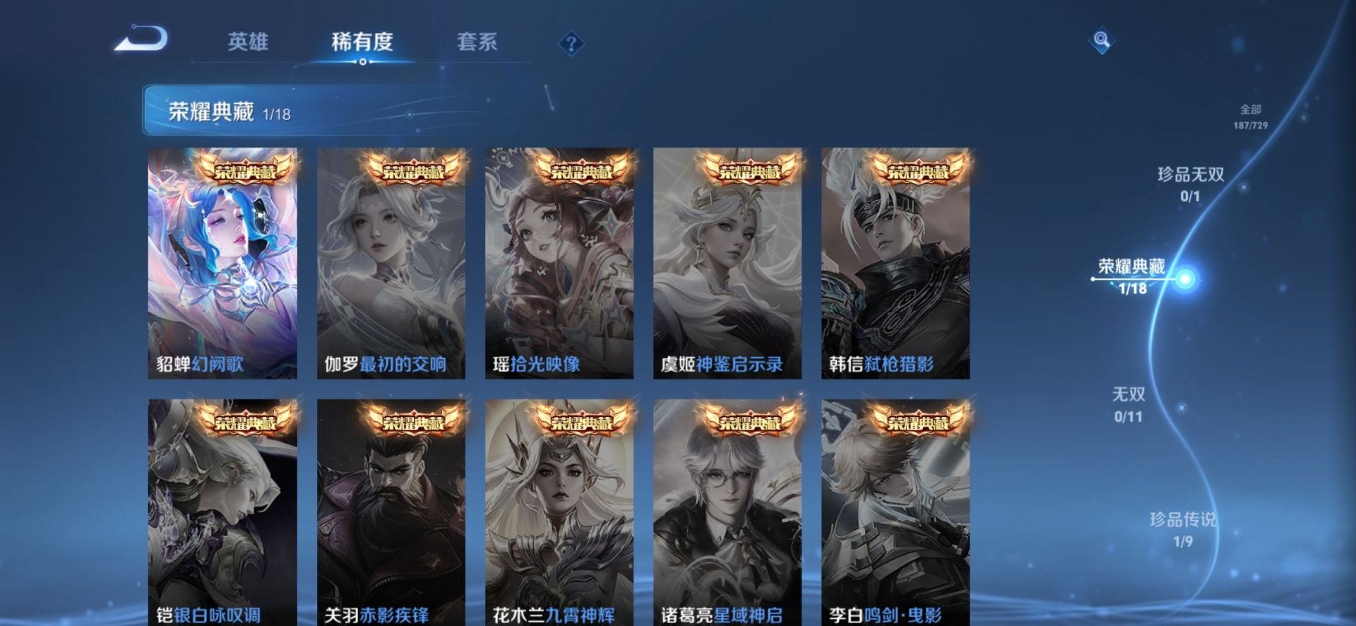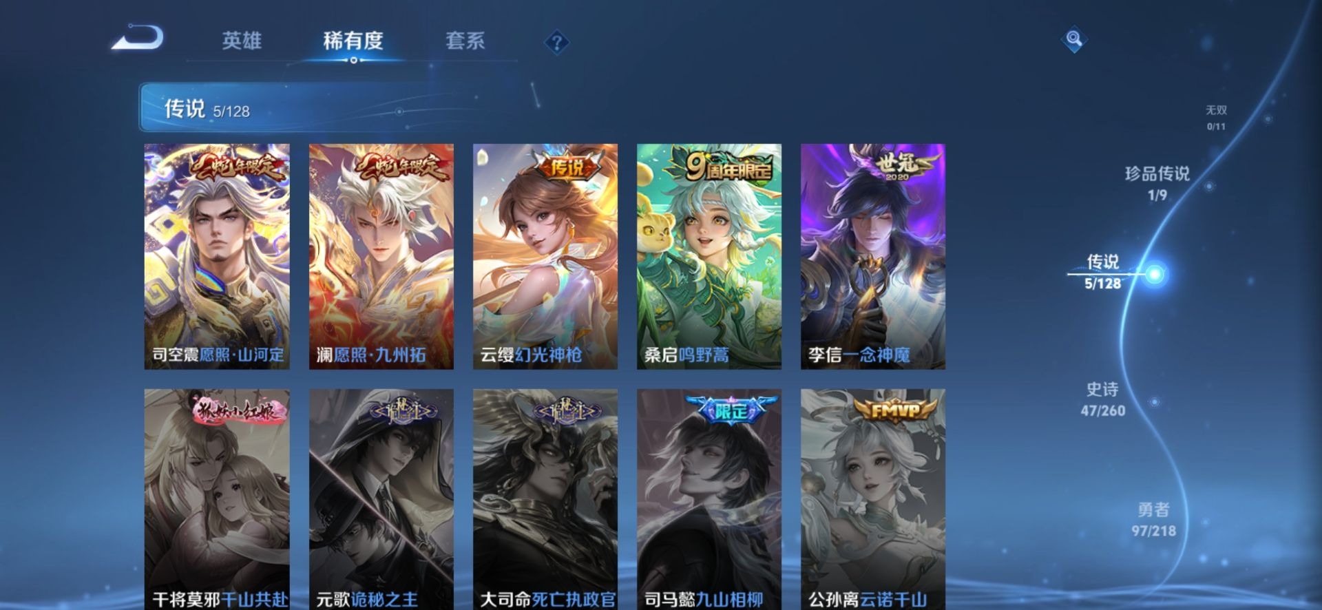 - [13338830]安卓Q-V7-秩序白银I段位-108英雄-164皮肤-1典藏-0珍品无双-0无双-0珍品传说-3传说-33史诗 【荣耀典藏】:孙悟空全息碎影 【传说皮肤】:貂蝉仲夏夜之梦,孙悟空地狱火,狄仁杰超时空战士 【限定皮肤】:白起狰,狄仁杰阴阳师,赵云皇家上将,赵云引擎之心,嬴政白昼王子,鲁班七号狮舞东方,阿轲迷踪丽影,钟无艳王者之锤,芈月重明,吕布猎兽之王,周瑜赤莲之焰,夏侯惇朔风刀,甄姬游园惊梦,典韦穷奇,典韦蓝屏警告,马可波罗暗影游猎,狄仁杰魔术师,狄仁杰万华元夜,项羽海滩派对,老夫子醍醐杖,程咬金演武夺筹,刘邦夺宝奇兵,韩信逐梦之影,兰陵王驯魔猎人,牛魔御旌,李元芳银河之约,钟馗神迹守卫,钟馗驱傩正仪,杨玉环遇见飞天,女娲朔望之晖,干将莫邪冰霜恋舞曲,雅典娜单词大作战,蔡文姬繁星吟游,太乙真人饕餮,鬼谷子原初探秘者,百里玄策原初追逐者,百里守约朱雀志,弈星混沌棋,沈梦溪星空之诺,明世隐疑决卦,裴擒虎李小龙,狂铁御狮,米莱狄御霄,盾山御銮,猪八戒西部大镖客,上官婉儿梁祝,上官婉儿天狼绘梦者,蒙犽狂想玩偶喵 【年限皮肤】:百里守约朱雀志 【赛季限定】:白起狰,芈月重明,夏侯惇朔风刀,典韦穷奇,狄仁杰万华元夜,老夫子醍醐杖,程咬金演武夺筹,牛魔御旌,钟馗驱傩正仪,太乙真人饕餮,鬼谷子原初探秘者,百里玄策原初追逐者,弈星混沌棋,明世隐疑决卦,狂铁御狮,米莱狄御霄,盾山御銮 【战令限定】:嬴政白昼王子,鲁班七号狮舞东方,阿轲迷踪丽影,吕布猎兽之王,周瑜赤莲之焰,典韦蓝屏警告,马可波罗暗影游猎,刘邦夺宝奇兵,兰陵王驯魔猎人,李元芳银河之约,钟馗神迹守卫,女娲朔望之晖,雅典娜单词大作战,沈梦溪星空之诺,猪八戒西部大镖客,蒙犽狂想玩偶喵 【史诗皮肤】:钟无艳王者之锤,赵云皇家上将,赵云未来纪元,貂蝉圣诞恋歌,狄仁杰魔术师,孙尚香水果甜心,曹操幽灵船长,李白千年之狐,韩信白龙吟,赵云引擎之心,刘邦德古拉伯爵,韩信逐梦之影,夏侯惇乘风破浪,诸葛亮黄金分割率,甄姬游园惊梦,百里守约特工魅影,杨玉环遇见飞天,嬴政白昼王子,百里守约朱雀志,干将莫邪冰霜恋舞曲,典韦蓝屏警告,鲁班七号狮舞东方,狄仁杰鹰眼统帅,兰陵王驯魔猎人,上官婉儿梁祝,蔡文姬繁星吟游,李元芳银河之约,阿轲迷踪丽影,上官婉儿天狼绘梦者,马可波罗暗影游猎,蒙犽狂想玩偶喵,百里玄策原初追逐者,裴擒虎李小龙 【其他皮肤】:项羽海滩