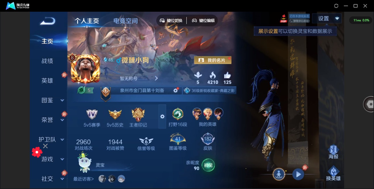 - [10292302]【小国标芈月】 贵族V6 星元皮肤1 传说皮肤4 史诗皮肤36 皮肤数量116 皮肤价值:79392 英雄86 荣耀黄金I