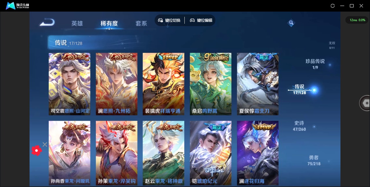 - [12323950]V8 1典藏 21传说 125英雄 277皮肤 可修改实名 优质装备:弑枪猎影(韩信典藏),久胜战神,一念神魔,末日机甲-孙尚香(绿蚂蚱),仲夏夜之梦(大飞蛾),末日机甲-孙策,山海·炽霜斩(李信年限),画中仙,灼幽烈阳,妄想实况,妄想奇谈,霜月吟,澜逐花归海,琥珀纪元马超,黄金天蝎座,涂山容容 传说皮:乘龙·问璇玑(孙尚香年限),乘龙·淬吴钩(孙策年限),貂蝉曦玄引,幻光神枪 珍宝阁皮:万物之道,玩趣恶龙 限定皮:愿照·九州拓(澜年限),夏侯惇霜北刀,傲雪梅枪,五谷丰年,御风骁将(吕布年限),默契交锋-花木兰,乒乒小将,神器·万象笔 史诗皮:灵蛊蚀心,化蝶舞,鸭鸭历险记-刘禅,龙之律动,琥珀纪元伽罗,石田雨龙,蒙犽顽岩魄,谪仙醉月,星界特工,破空之剑,埋骨钱,百相守梦-黄忠,紫霞仙子,苍穹之光,电玩小子(小书包),白龙吟,黄金分割率,特工魅影,千年之狐,永昼,末日机甲-莱西奥,匿光侦查者,江河有灵,百解令(蒙犽),高渐离燃音魔法,魅语,冰冠公主,青蛇,偶像歌手,百相守梦(刘备),暗夜猫娘,末日机甲-吕布,猫狗日记-孙策,猫狗日记-大乔,时之恋人-孙尚香,乱世虎臣,节奏热浪,修罗,女仆咖啡,摇滚巨星,水果甜心,绅士熊喵,天才门将,星夜王子,心灵骇客,功夫厨神,德古拉伯爵,暗隐猎兽者,幽灵船长,鬼剑武藏,暗渊魔法,心灵战警,天秀·启明,舞动绿茵,地狱岩魂,纤云弄巧,拒霜思,缤纷独角兽,乘风破浪,逐浪之夏,月团寄思,水晶猎龙者,曙光守护者,热力回旋,箭羽风息,唤灵魅影,金属风暴,圣诞狂欢,圣诞恋歌,鹰眼统帅,赏金猎手,未来纪元-赵云